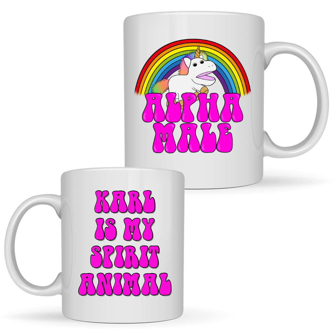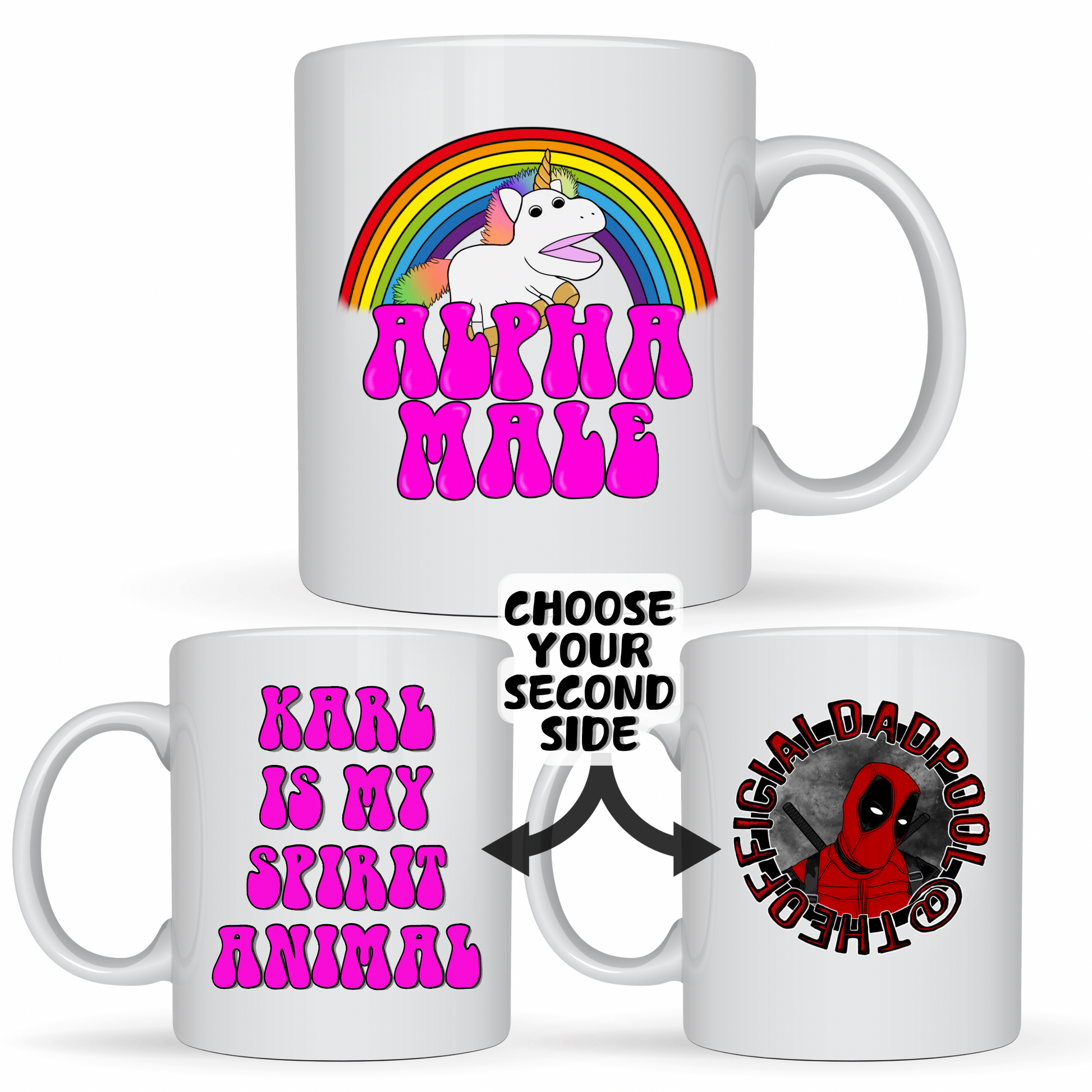 Introducing the Alpha Male Unicorn Mug - the perfect addition to your morning routine. Holding 15 oz of your favorite beverage, this ceramic mug features Karl the unicorn, bringing his rizz to your daily cup of coffee!