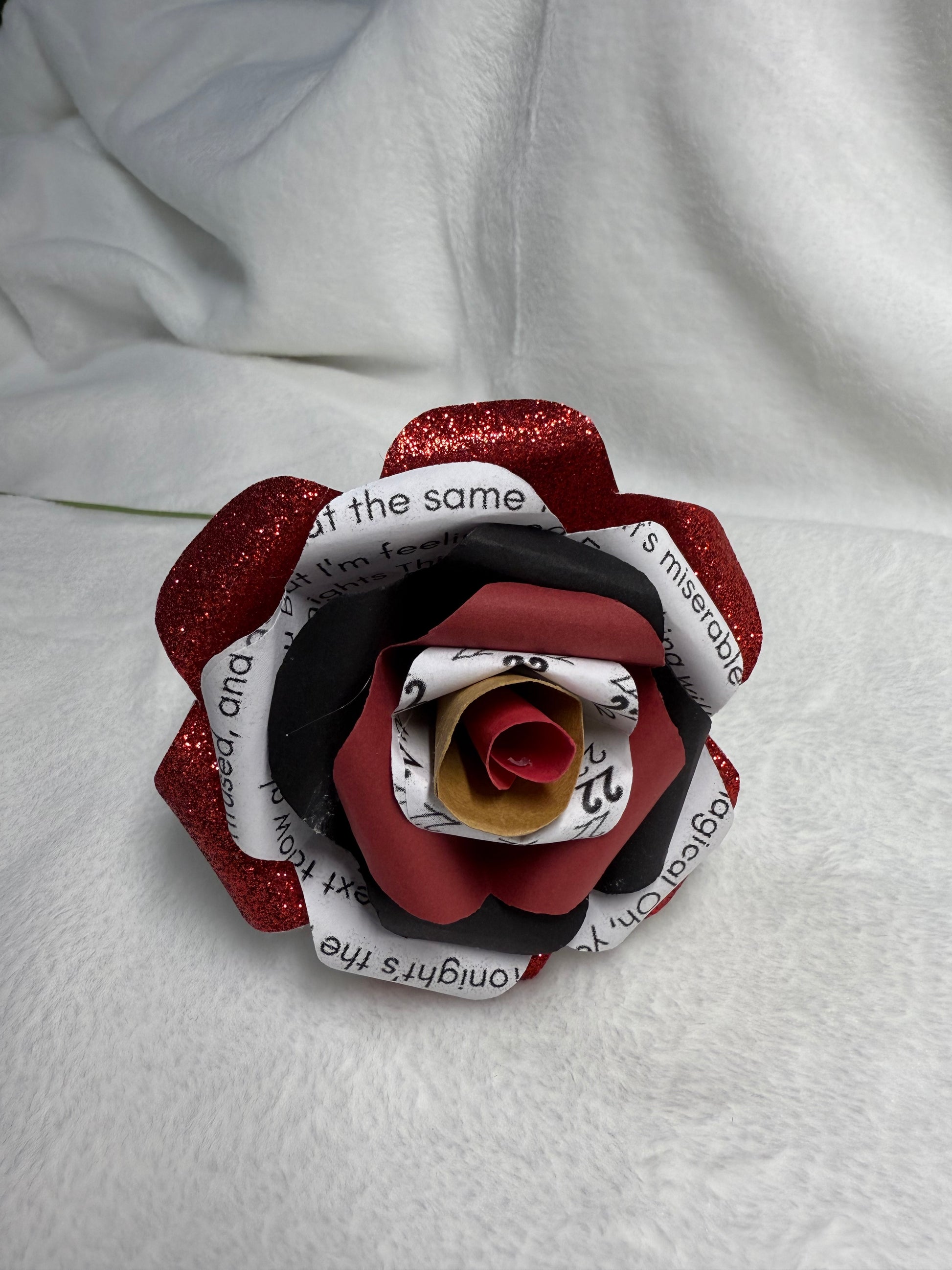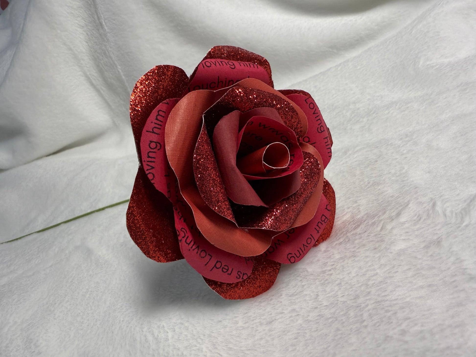 These Book Page Roses in T.S Red are a unique addition to any home decor. Handcrafted by a local artist, they add a touch of creativity and charm to any space. Perfect for book lovers or those looking for a quirky twist on traditional flowers.