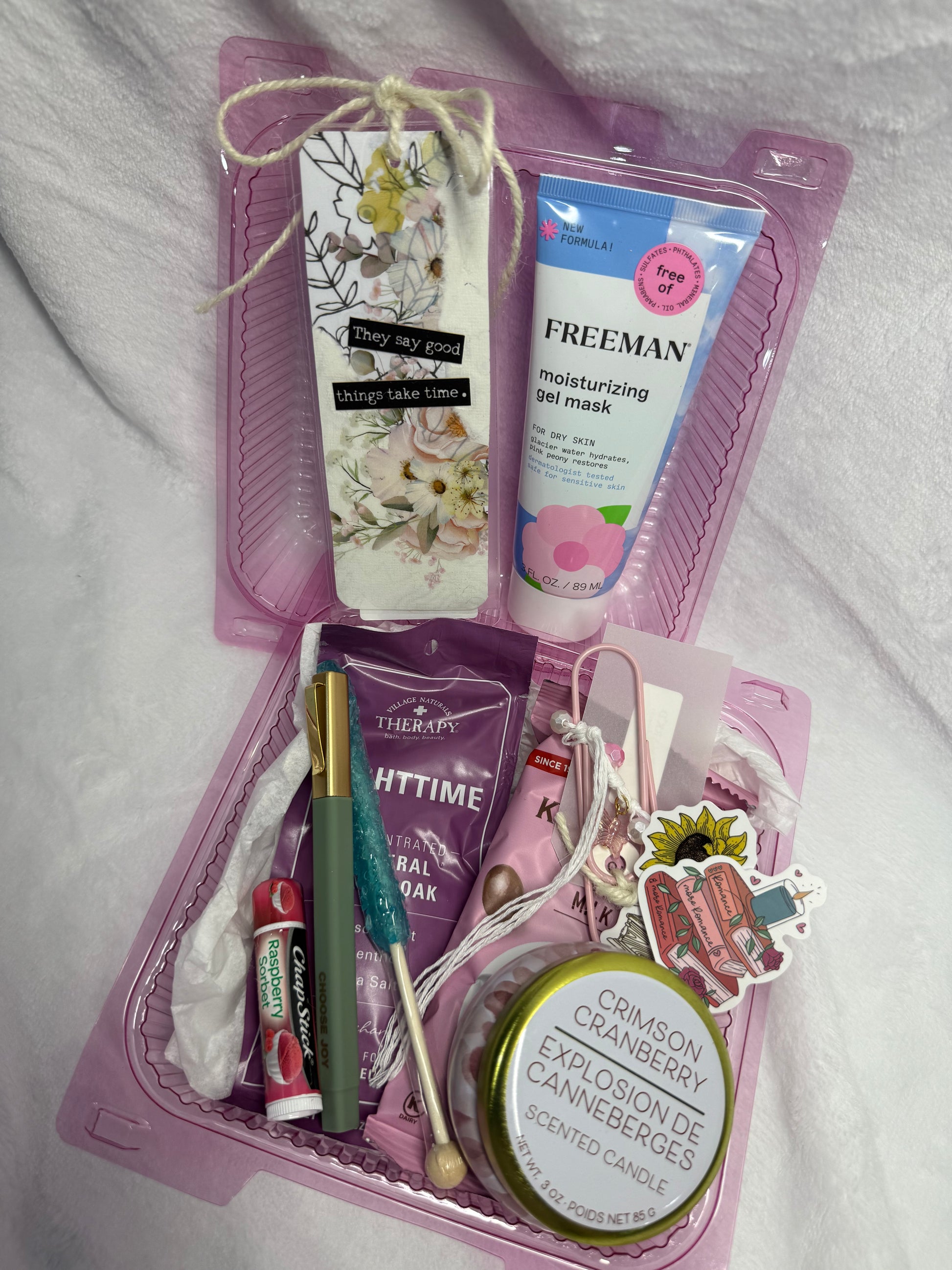 Introducing Bookish Self Care Boxes - the perfect way to unwind and escape into a bookish oasis! Each box includes a calming candle, nourishing lip balm, luxurious bath soak, whimsical stickers, handmade bookmark and more. Indulge in a little "shelf-care" and treat yourself to some much-deserved relaxation.