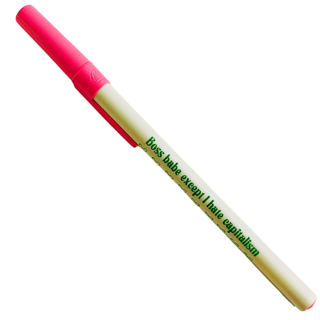 Give your written words a modern, Gen Z aesthetic with this Boss Babe Except I Hate Capitalism Pen.