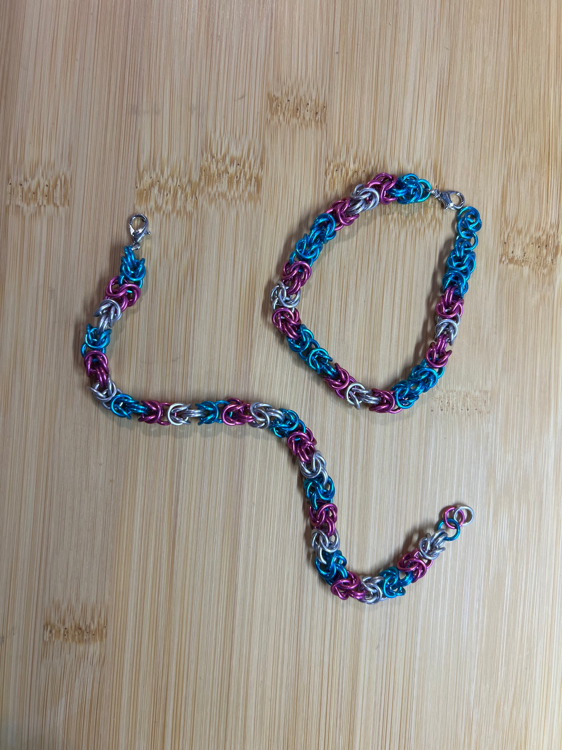 Add some flair to your outfit with ourChainmaille Trans Pride Bracelets! These durable and stylish bracelets feature iconic transgender pride colors and will show off not only your fashion sense but also your support for the LGBTQ+ community. Bracelets come in two sizes. (Perfect for sharing with your ally or partner!)