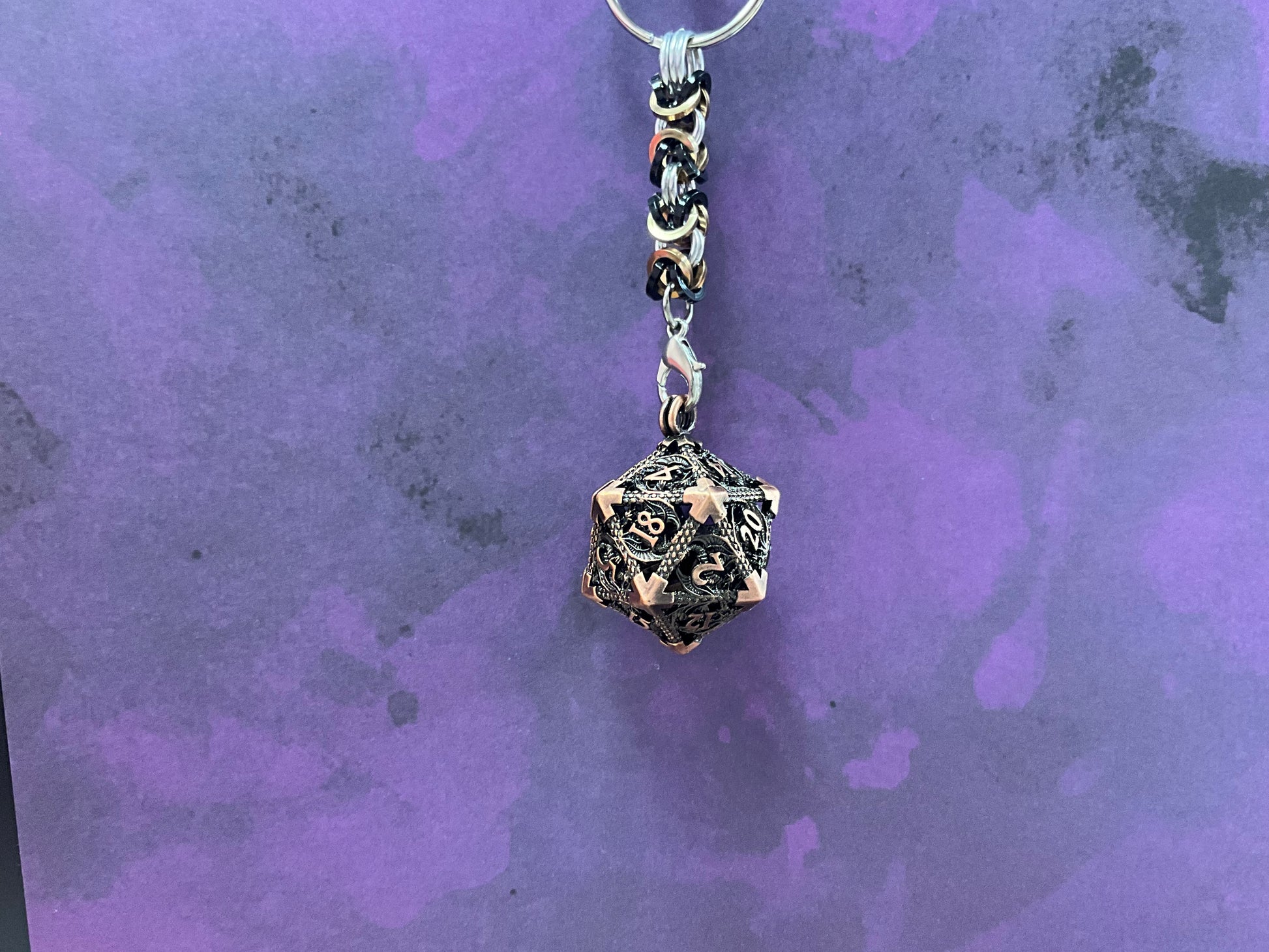 D20 Chainmaille Keychain || Micro Dice Set Inside
