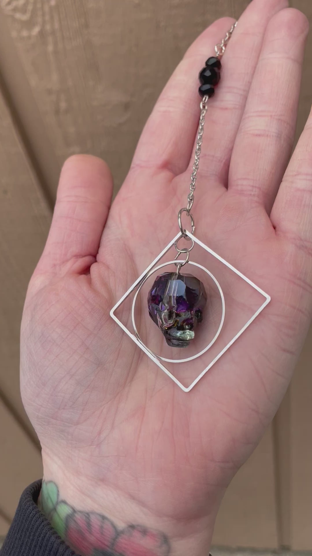 Perfect for that little ray of pitch black in your life, these suncatchers bring a little sparkle to wherever they hang! Each features glass beads, the simple version has a glass skull and the XL style has lava stones and a glass point.