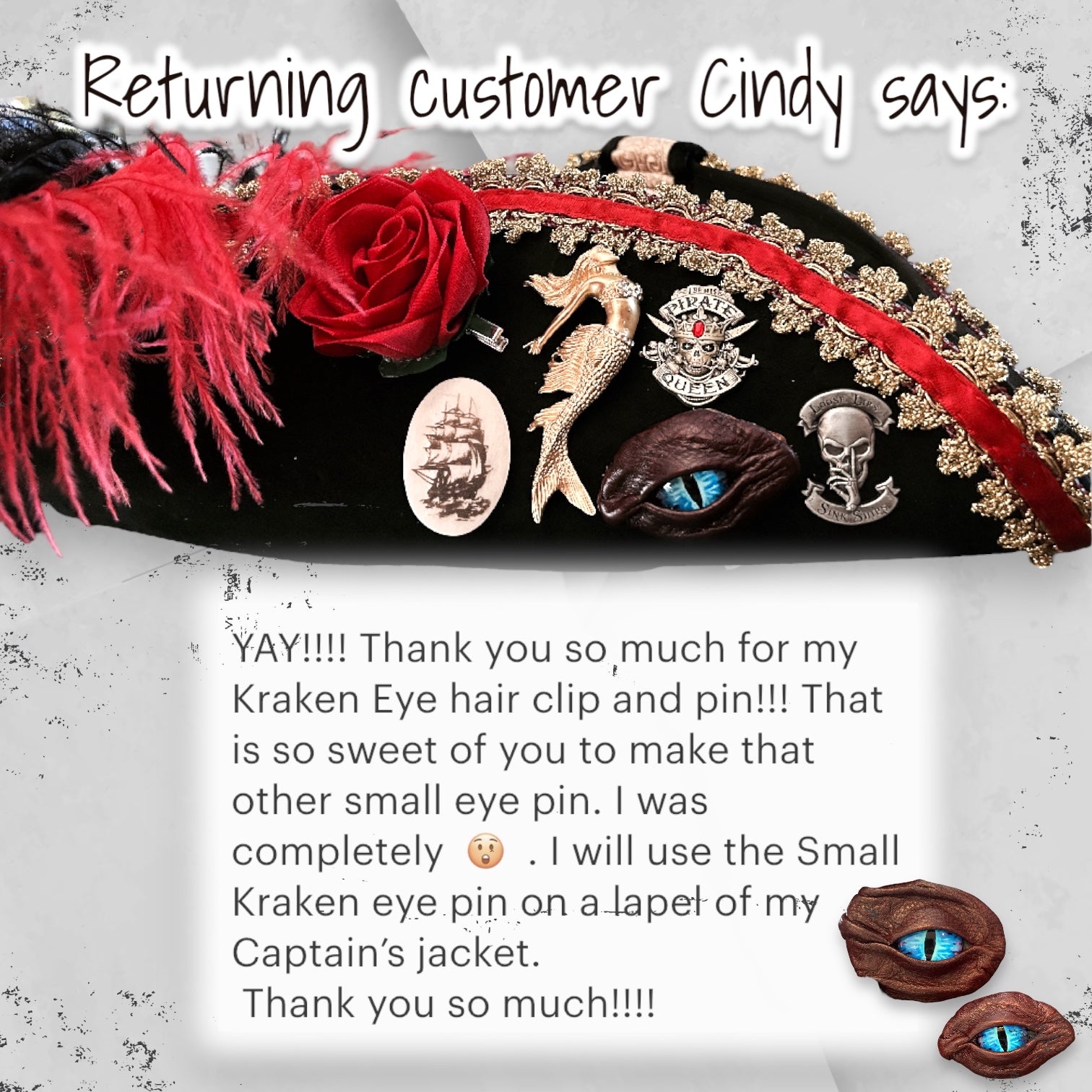 Add one of these leather eye hair clips to your hair or hat for a little of that Renaissance Faire flair! Perhaps you want a little touch of Toothless to dress up your look, or an eye of the Kraken if yer the seafarin’ type.