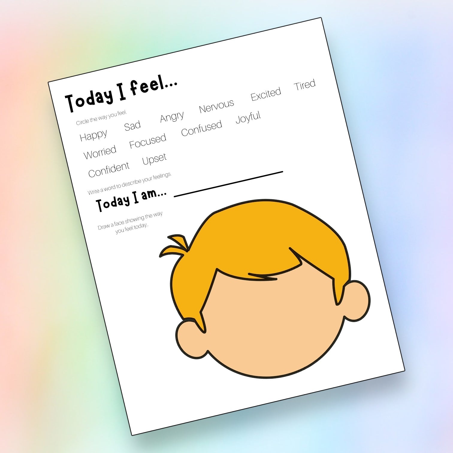 These Today I Feel sheets are the perfect tool for learning about emotions! Kids can circle in the feelings chart to express their current emotion, plus use the dry erase face to practice identifying feelings - all without making a mess! Perfect for kids with ADHD or sensory processing needs.