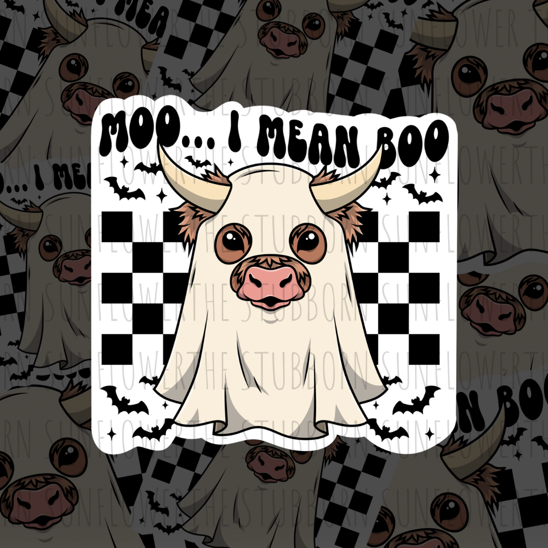 Stick a little sparkle and fun in your life with this "Moo, I Mean BOO!" sticker! Featuring an adorable highland cow and a couple of bats, this sticker comes in either holo or glossy for your delight. Get ready to mooo-ve the party!