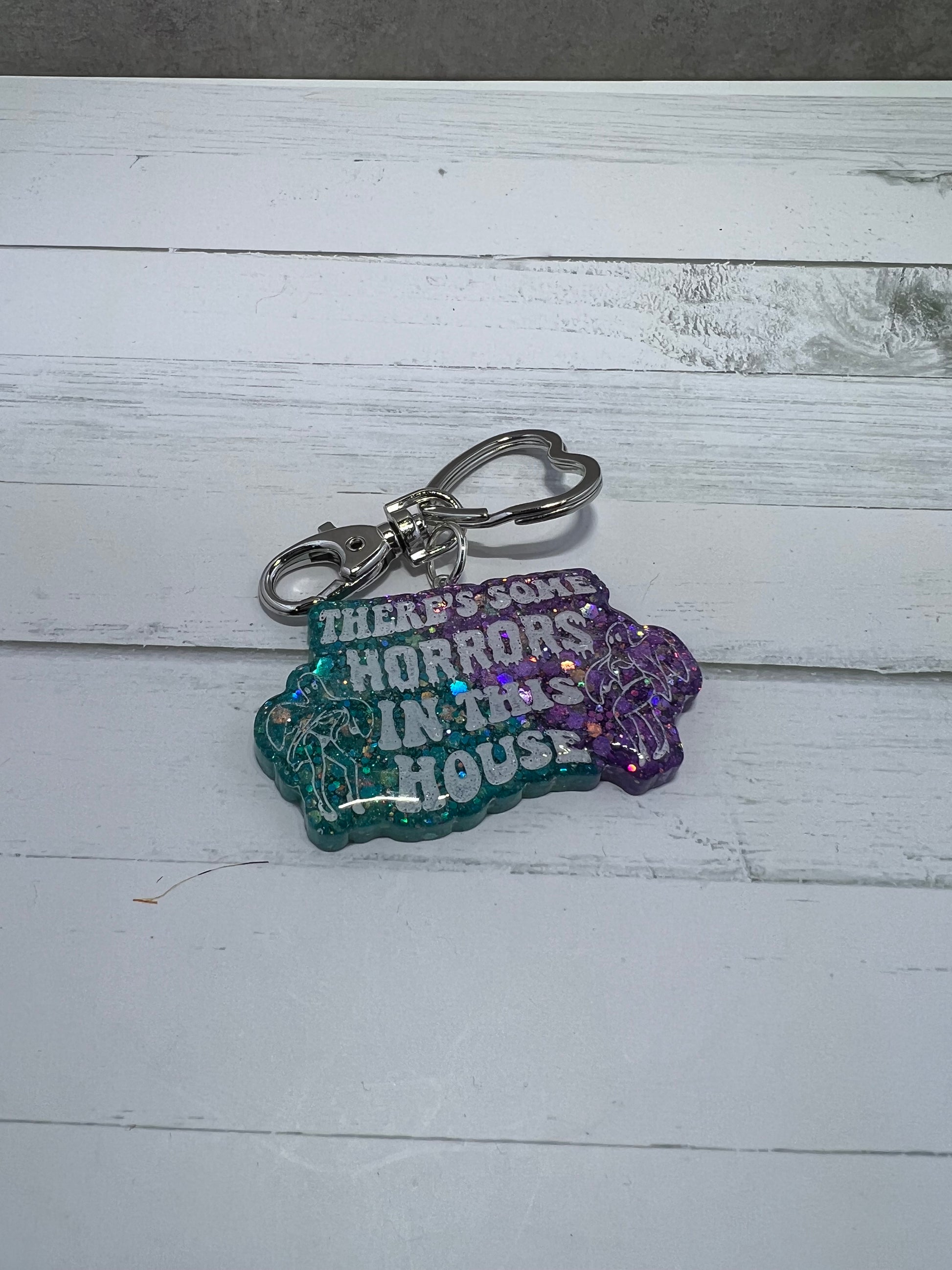 Spookily stylish, this keychain is perfect for when you need to keep the 'horrors in this house' under lock and key. Crafted with high-quality resin, it's a charming addition to your favorite set of keys. Boo-tiful!
