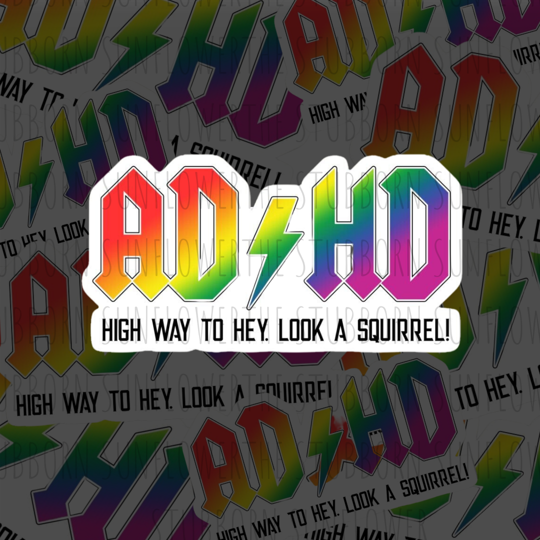 Be the envy of all your friends with the Highway To ADHD Sticker! This humorous sticker will show that you don't take yourself too seriously, with its "highway to hey look a squirrel" and ADHD references. It's sure to be the butt of any joke! So get your sticker and hit the highway!