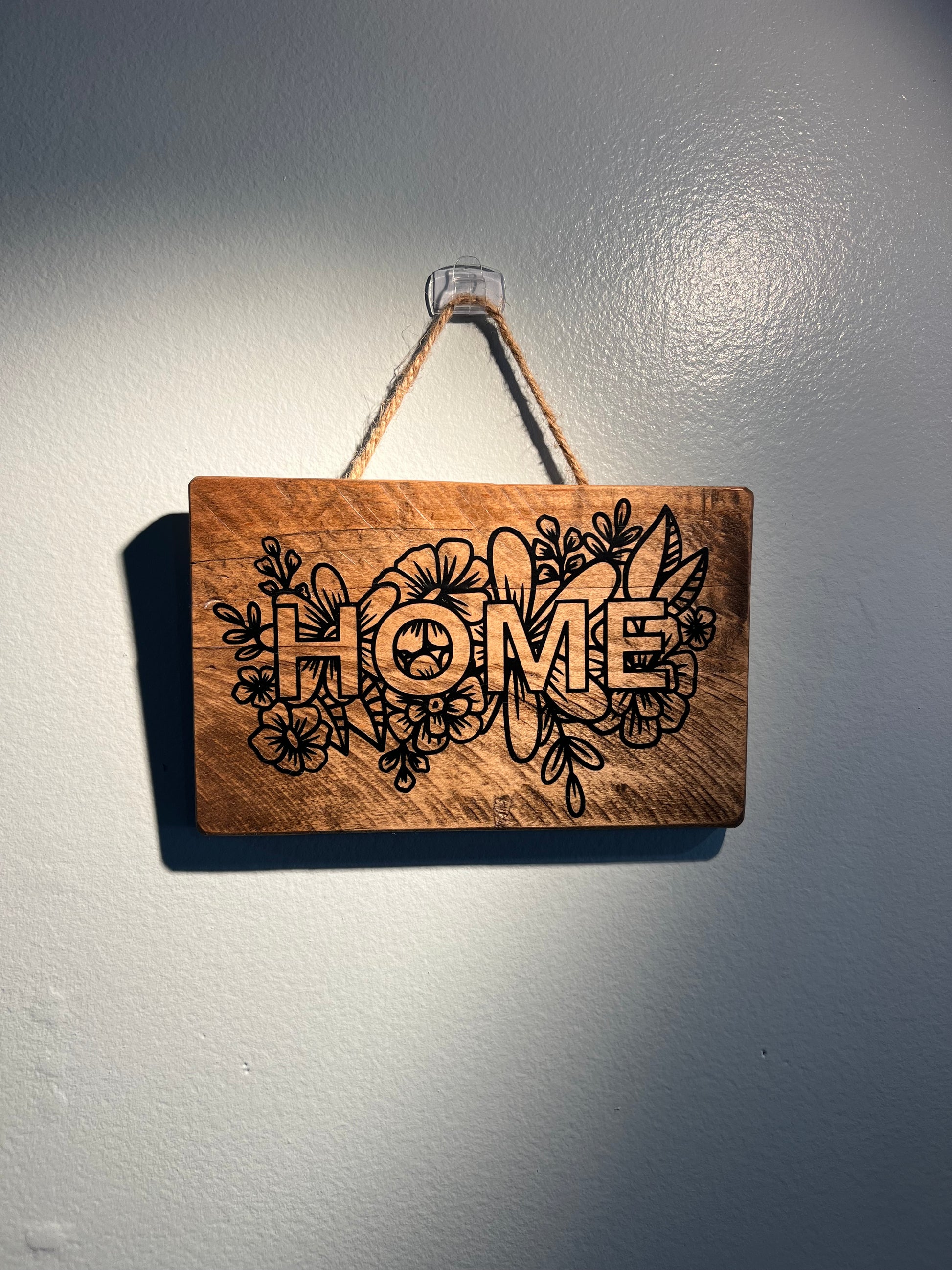 Show off your personality with this unique reclaimed wood home sign! This eye-catching decor piece features beautiful wild grain and can be used to add a rustic touch to any home. Add some charm to your living space today!