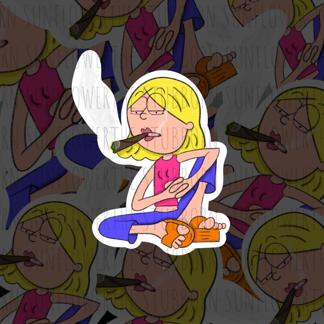 Make a statement that screams "I'm here!" with this vibrant Stoner Lizzie sticker. Get nostalgic with a reflection of the classic show and make a statement in glossy or holographic material. Add a little flair to your style and show off your unique personality!