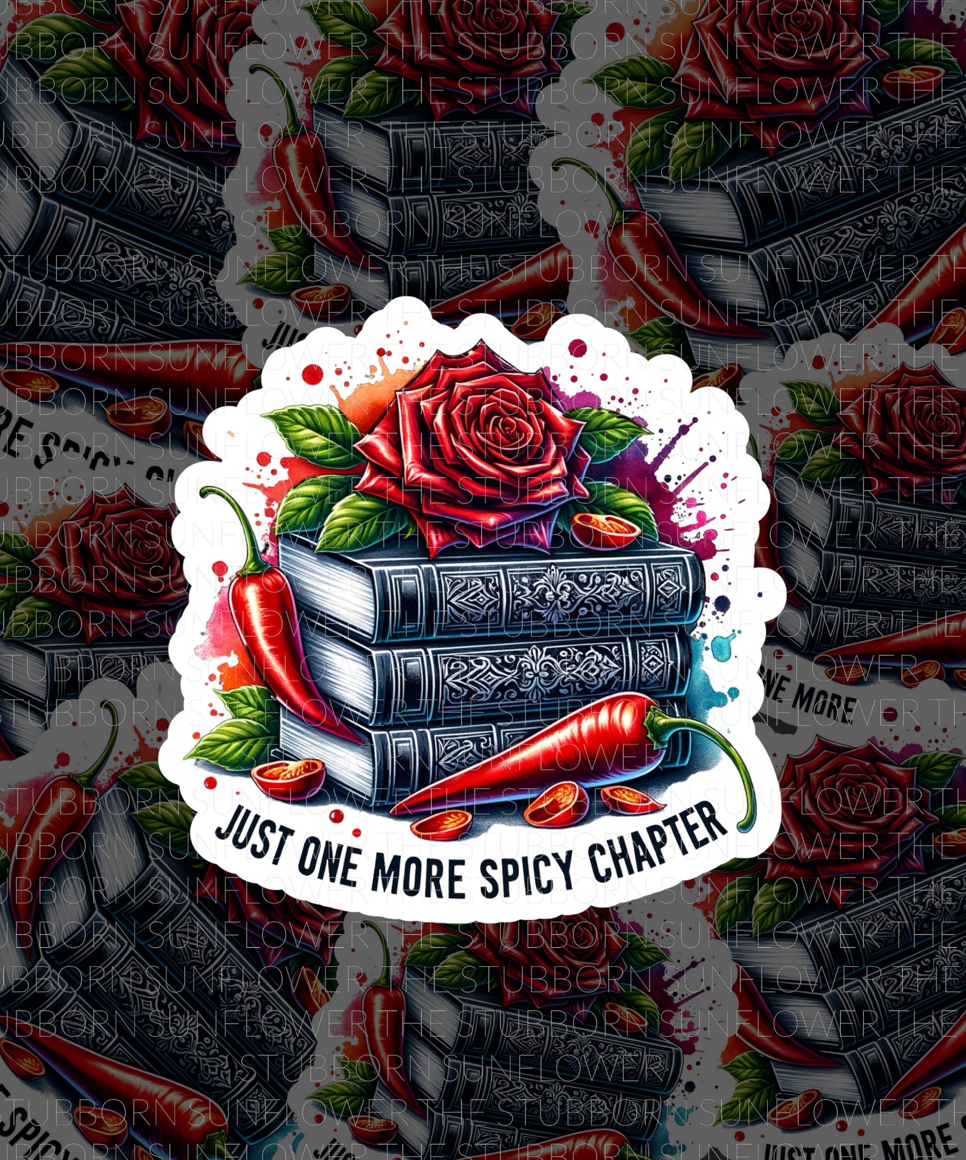 Spice up your book collection with our One More Spicy Chapter sticker! Perfect for book lovers, this sticker adds a touch of sass and humor to your books. Choose between holo or glossy finishes for an extra pop of style.