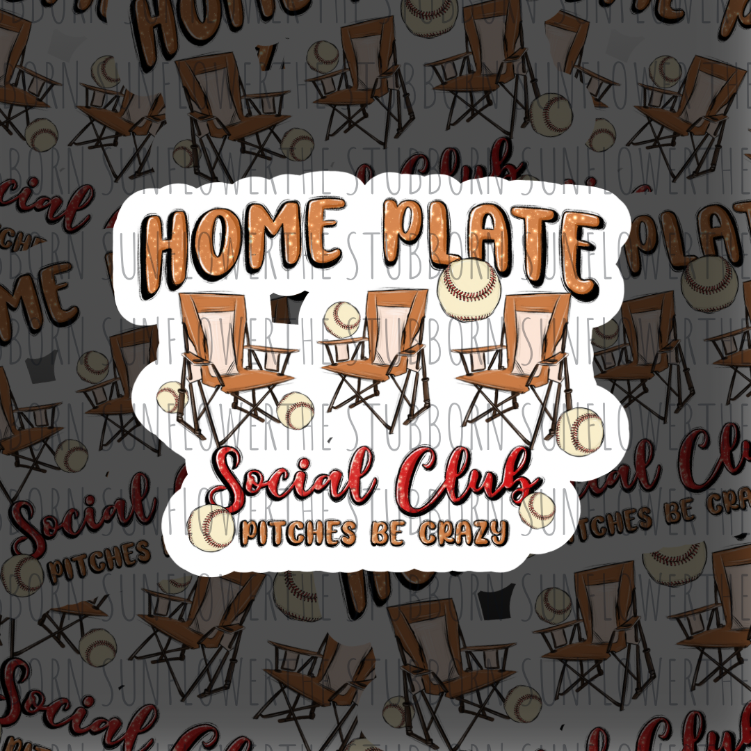 Join the Home Plate Social Club with this sticker that will have all the pitchers going crazy! Choose from a glossy or holo finish to add some major league style to your gear. Swing for the fences and show off your love for baseball with this unique sticker!