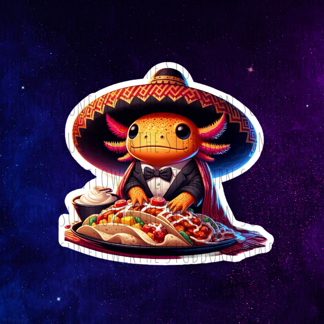 Add some quirky charm to your belongings with Enchilada the Axolotl sticker! This funny sticker is the perfect way to show off your unique style and love for axolotls. Stick it on your laptop, water bottle, or anywhere else you want to add a touch of humor.
