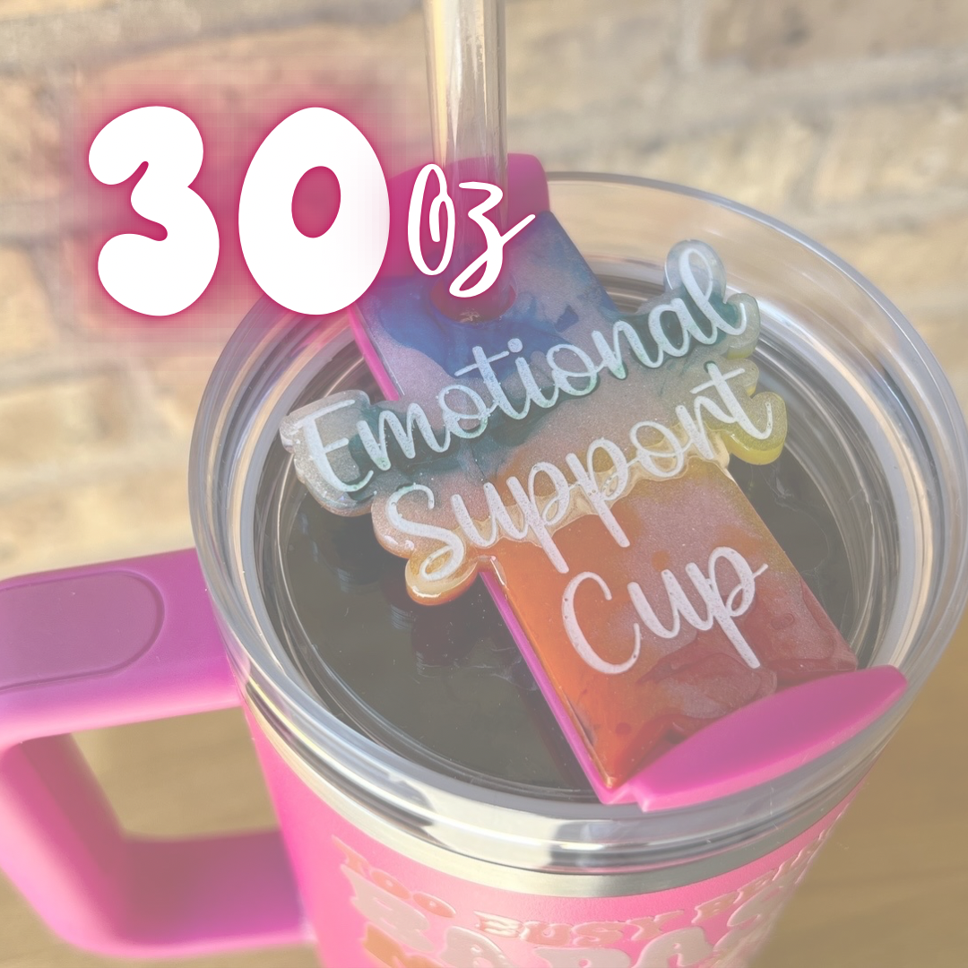 Add some fun and quirk to your cup collection with our Emotional Support Cup Stanley Toppers! Each cup comes with a unique handpicked resin Stanley topper, making it the perfect emotional support for your daily beverage needs. Available in both 30oz and 40oz sizes, because we know how much you need that extra boost!