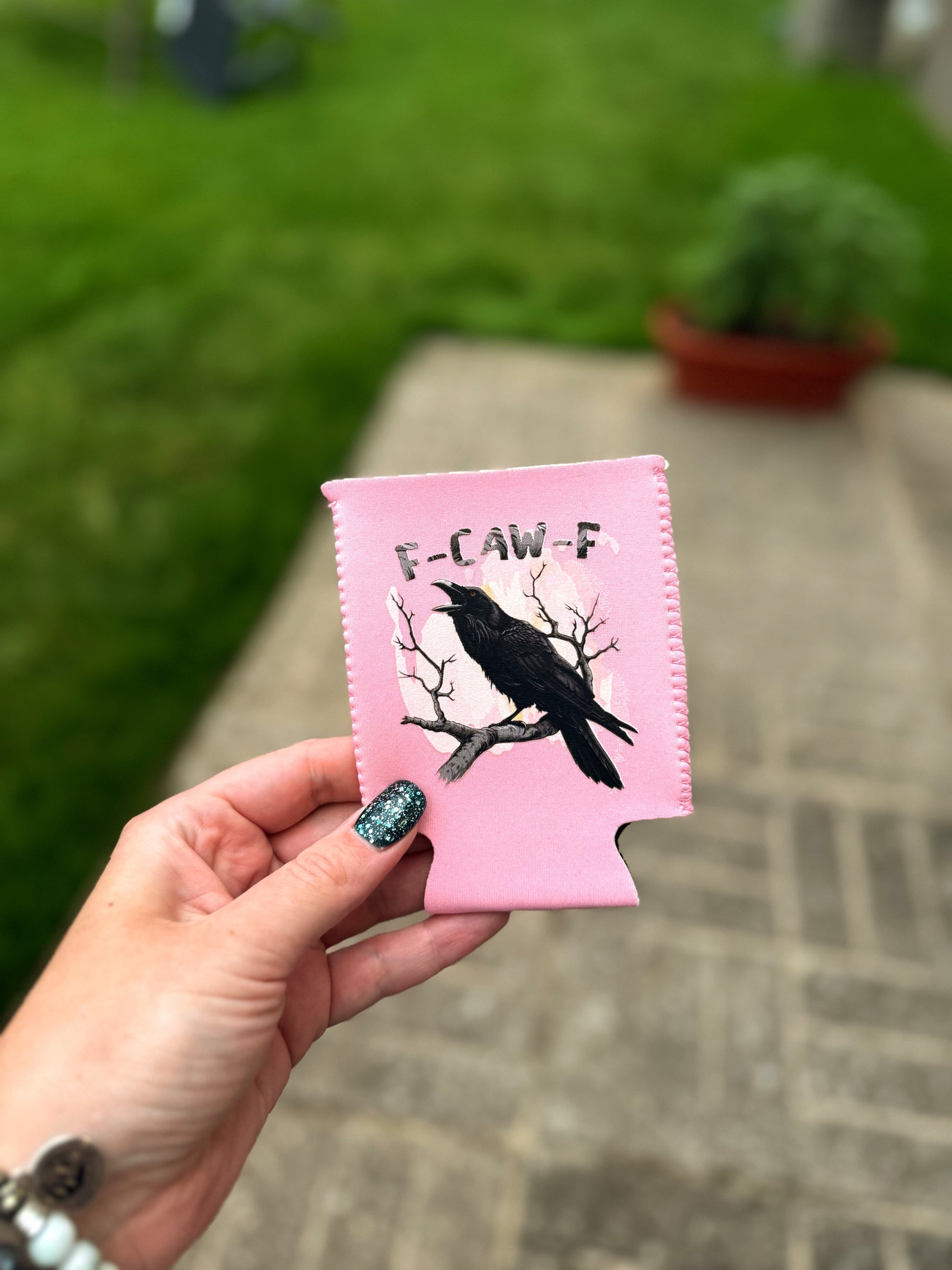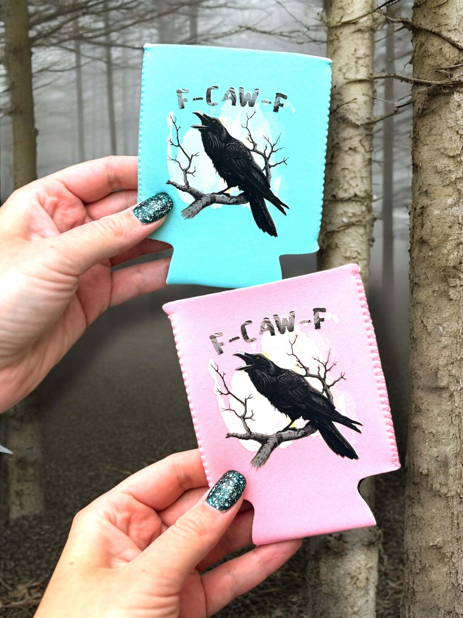 Keep your drinks cool and your style cooler with our F-Caw-F Can Koozies. These quirky koozies feature a funny crow design and come in pink or blue. Stay unique and be the envy of all your friends at your next party.