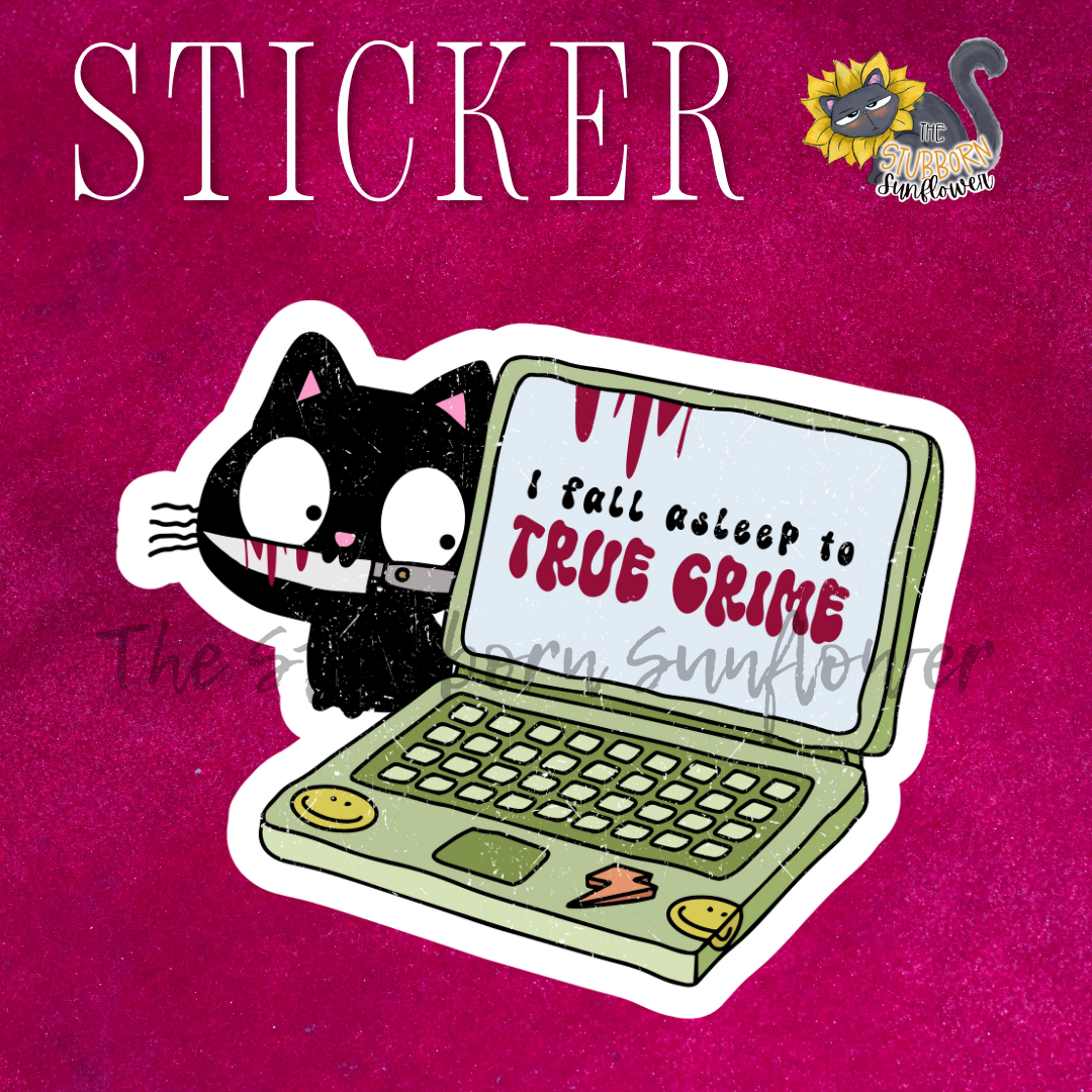 Get your true crime fix and a good night's sleep with our Fall Asleep To True Crime sticker. Stick it on your favorite spot and drift off into dreamland while listening to your favorite crime podcasts.