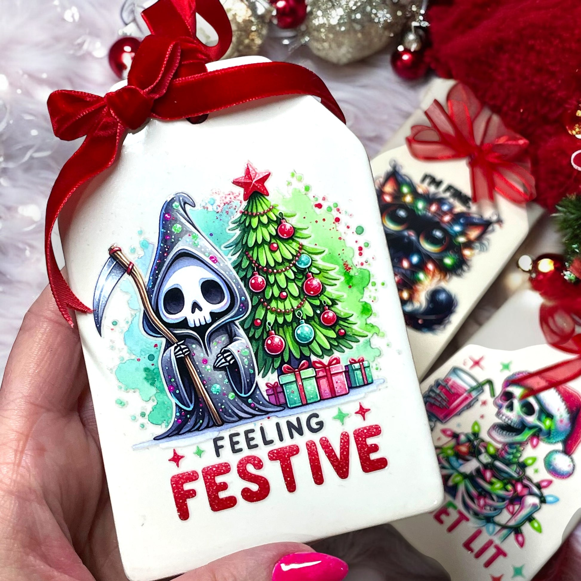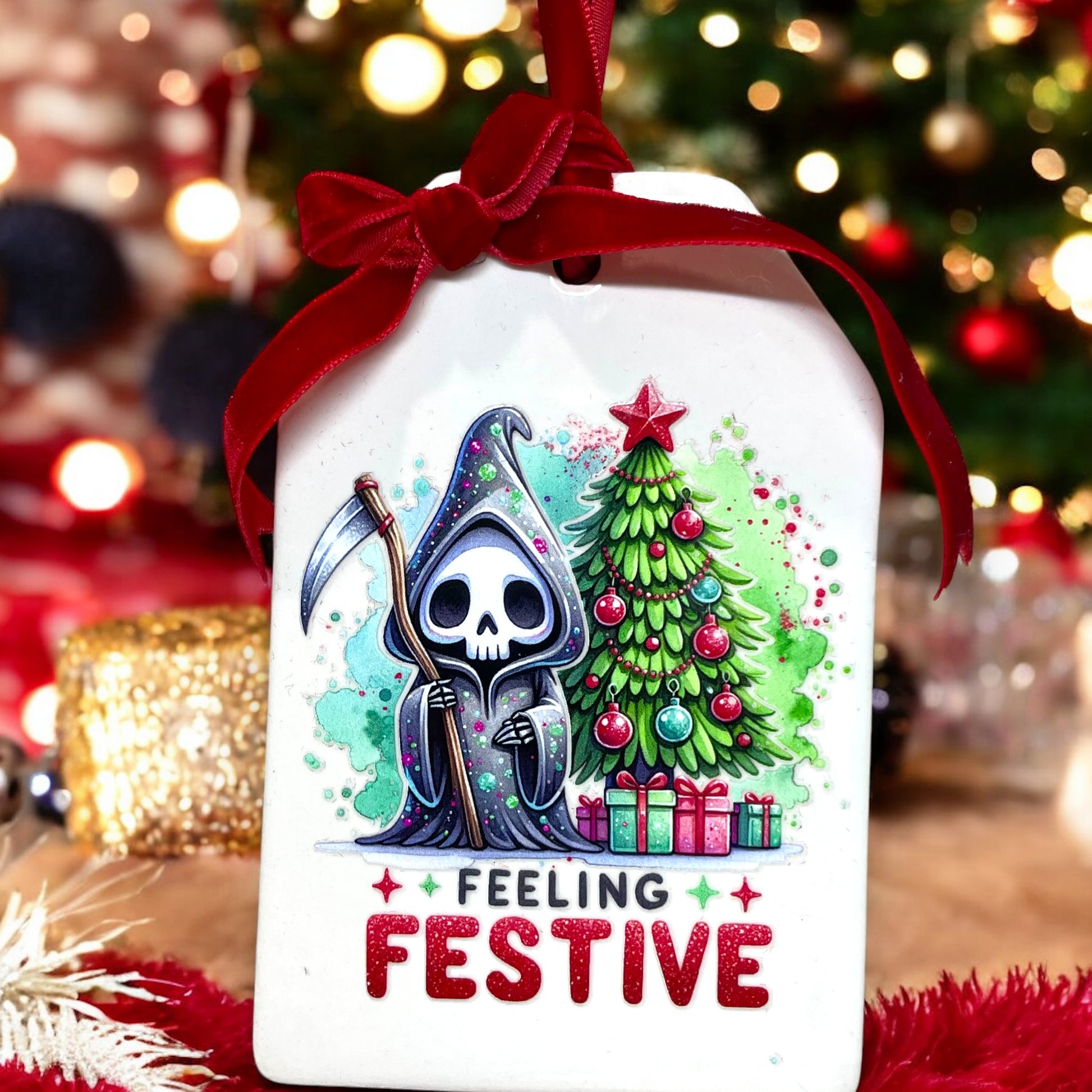Feeling Festive Reaper Holiday Ceramic Ornament