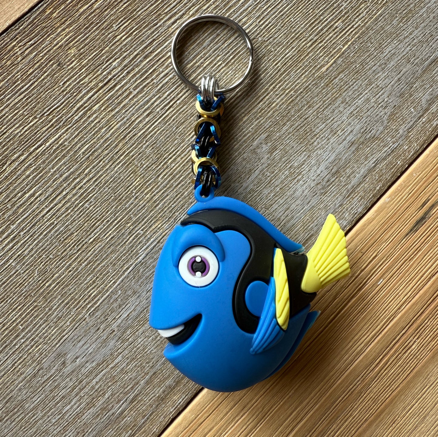 Get hooked on these Finding Nemo chainmaille keychains! Handcrafted by a local artist, choose from 4 fin-tastic characters. Guaranteed to add a splash of playfulness to your keys. (No fish were harmed in the making of these keychains.)