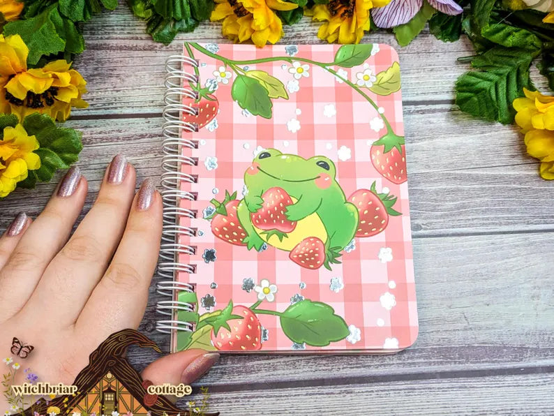 Take notes like a witch in this Frog Strawberry Hybrid Notebook. Each page is handcrafted by Witchbriar Cottage, so you can unleash your wild side (or your creative ideas) on the unique dot-grid and lined pages. Bring some magic to your writing with this quirky and fun notebook!