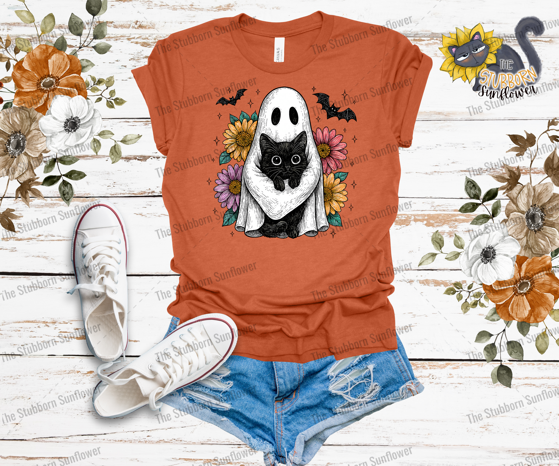 Sunflower Ghost Kitty T-Shirt