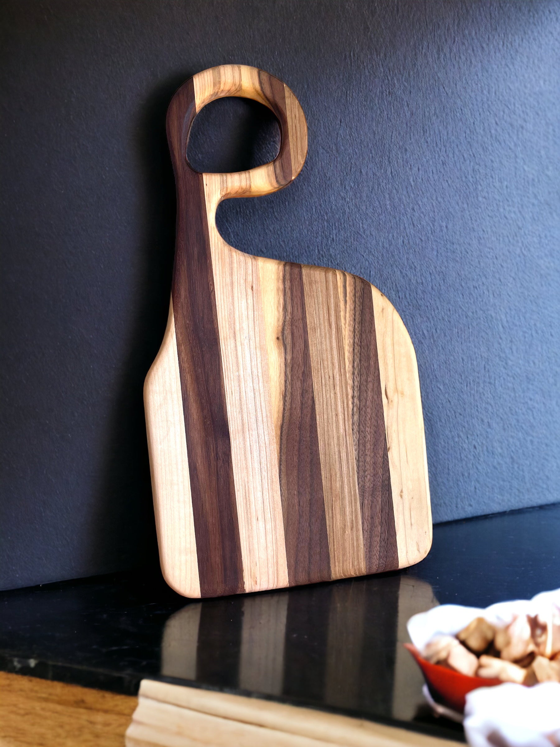 This handcrafted wood cutting board is perfect for charcuterie enthusiasts! It's made with high-quality wood by a local woodworker and finished with mineral oil for a professional, long-lasting look. Unleash your inner chef and chop away!
