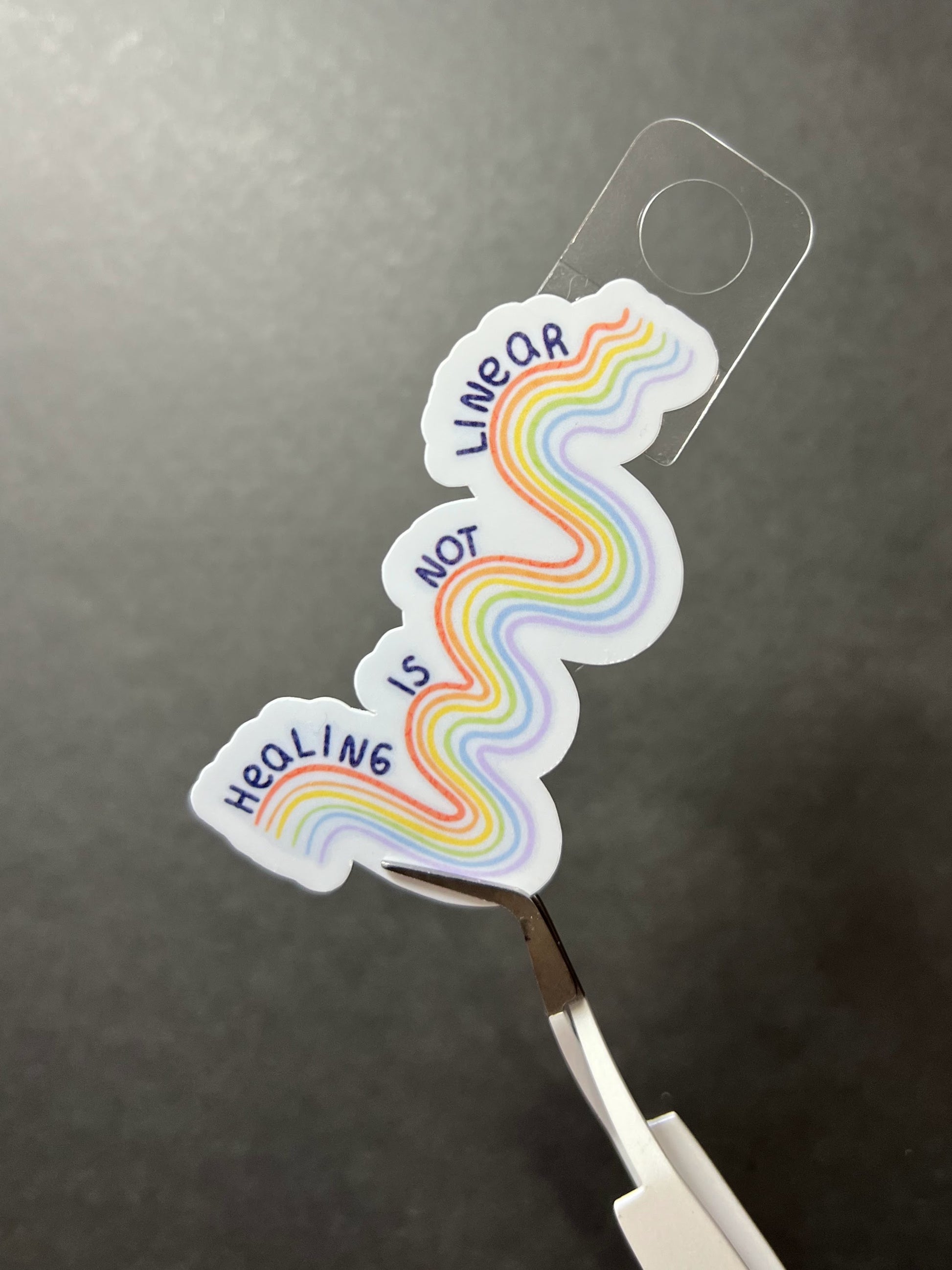 This Healing Is Not Linear sticker serves as a reminder that the healing process is not linear, but rather a journey with ups and downs. Place this sticker on your laptop or water bottle as a source of encouragement and motivation during tough times.