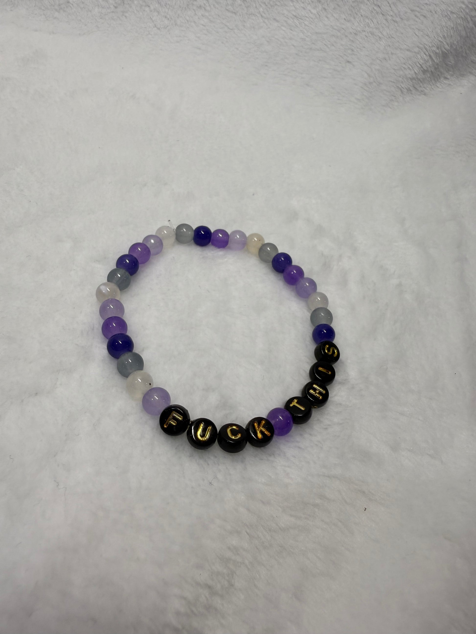 Stack up your rebellious side with our Inappropriate Bracelet Stack. This set of 5 bracelets features playful phrases like 'asshole', 'fuck this', and 'lol fuck'. Perfect for those who don't take themselves too seriously. Own your attitude and make a statement with this unique accessory.