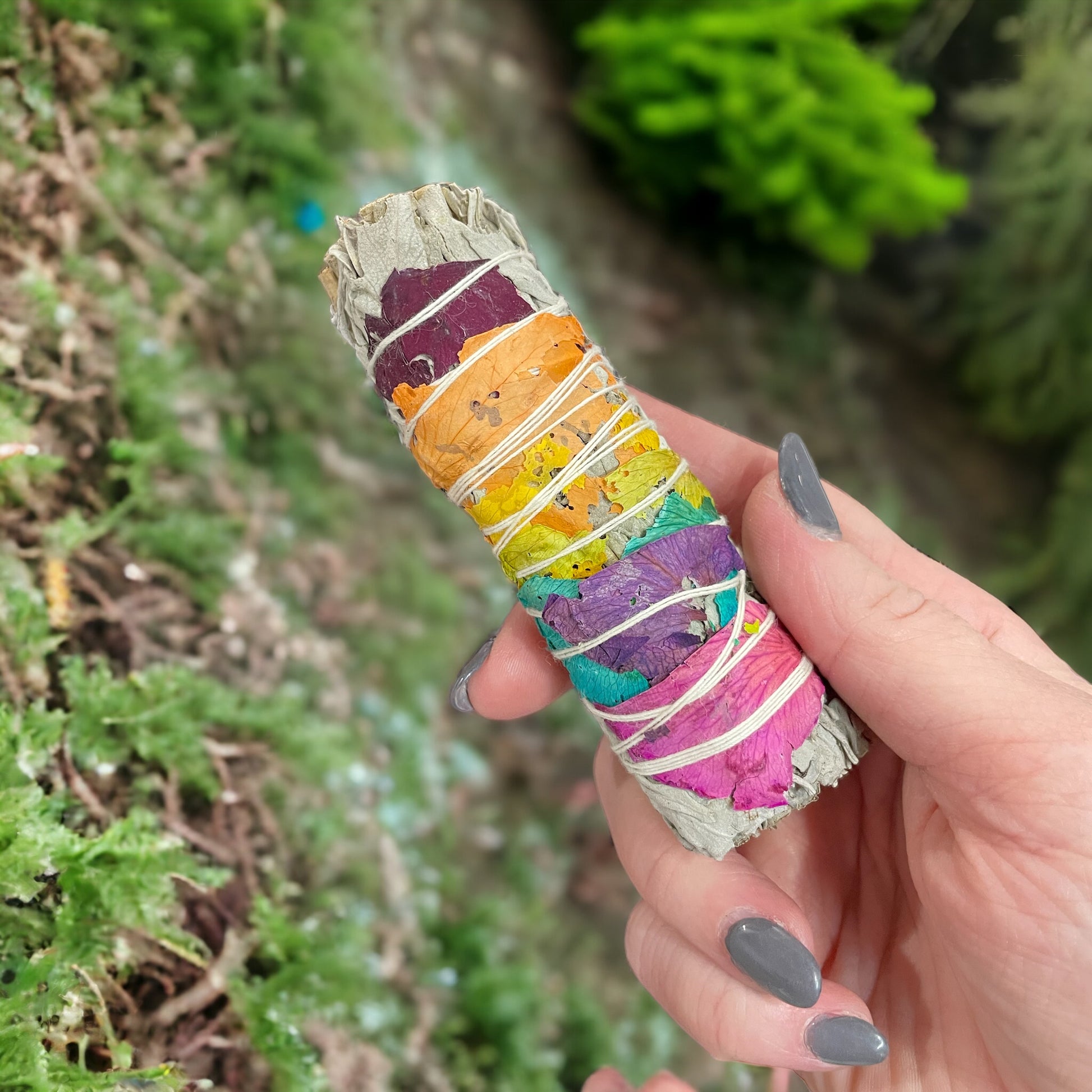 Fill your space with the enchanting aroma of this Rainbow Chakra Smudge Stick! Made with a combination of colorful flowers and fragrant sage, each stick has its own energy-cleansing properties to help you create a positive, peaceful environment. Use thaw sticks to infuse your space with the power of the rainbow! 🌈