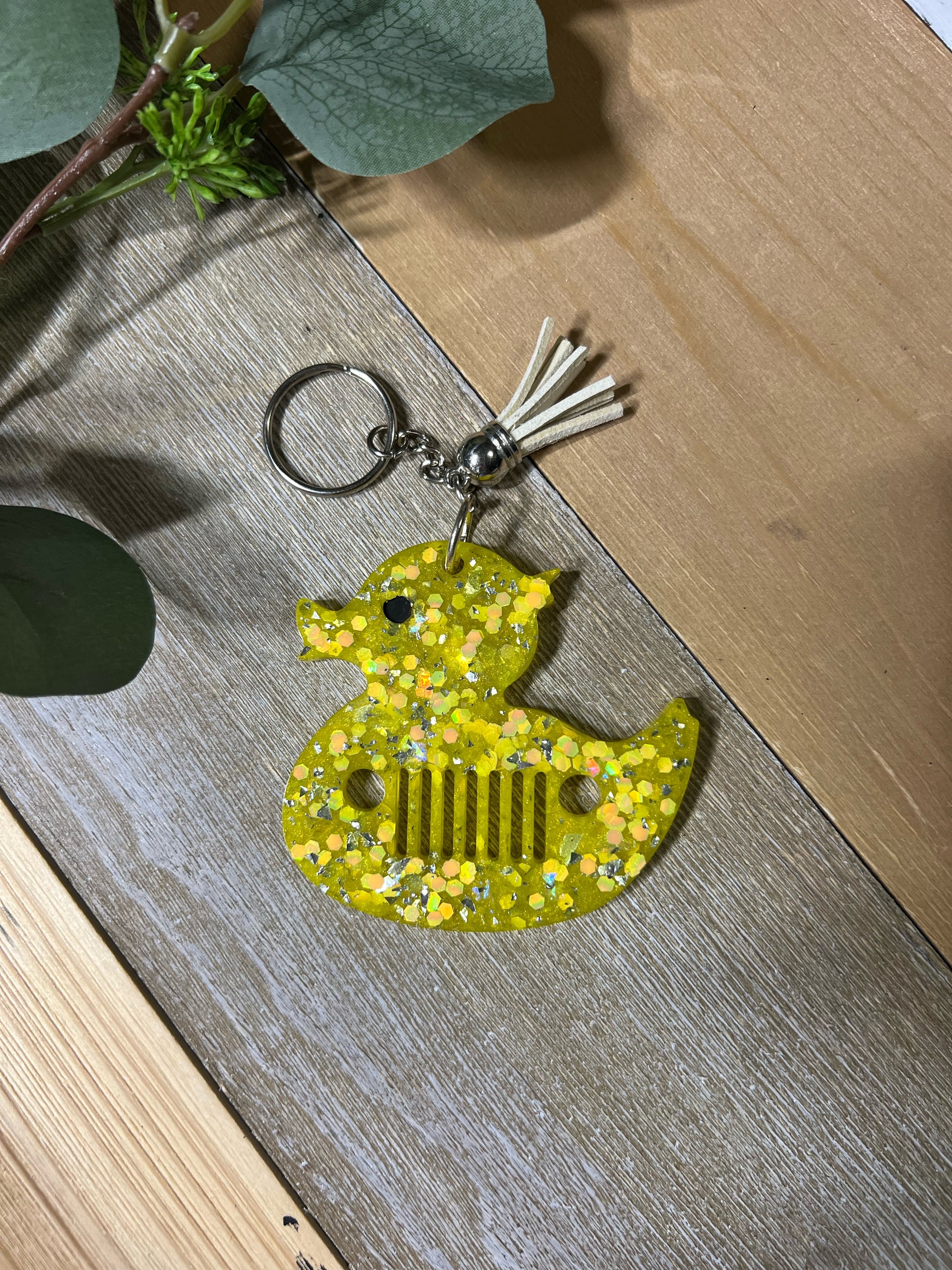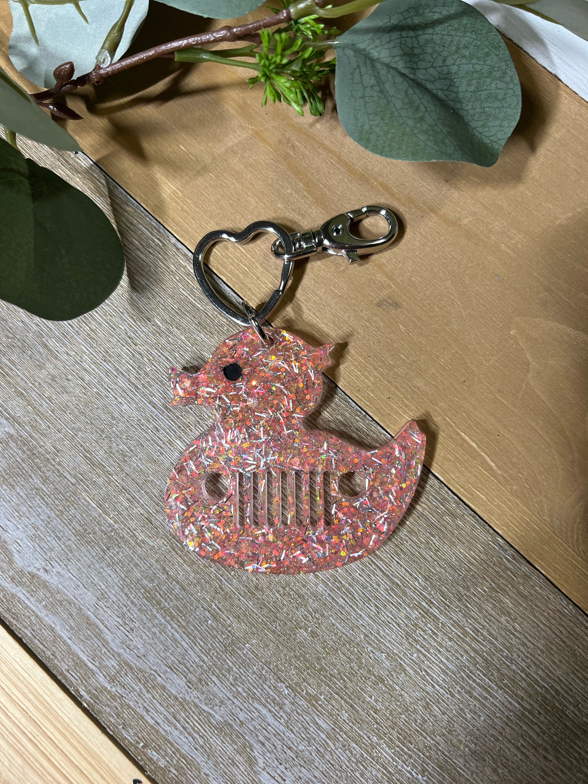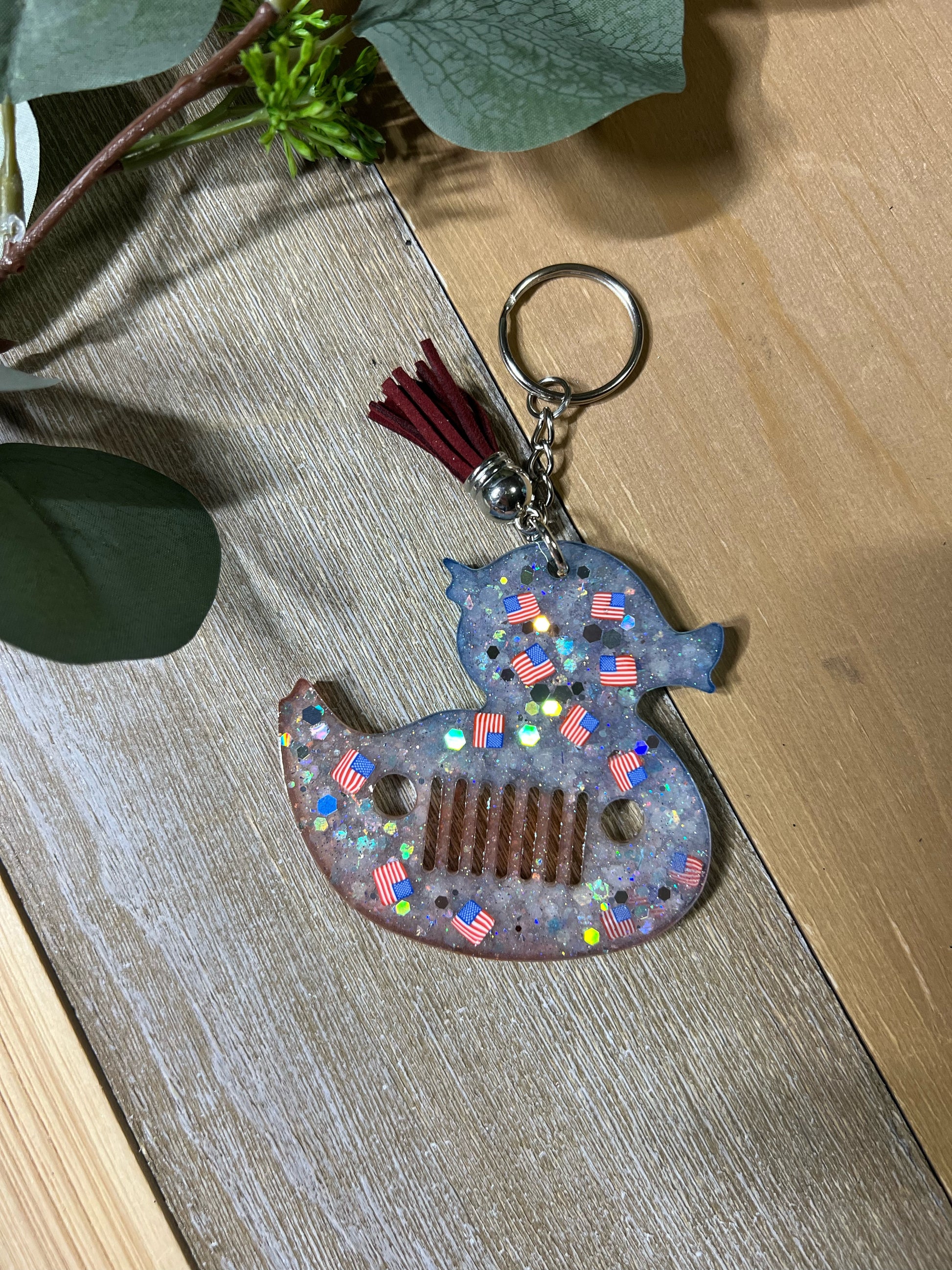 This Jeep Duck Keychain is here to drive away boredom! Add a unique twist to your keyring with this ducky jeep made of resin, available in different colors. Show off your style or give a reminder to your friends - you've been ducked!