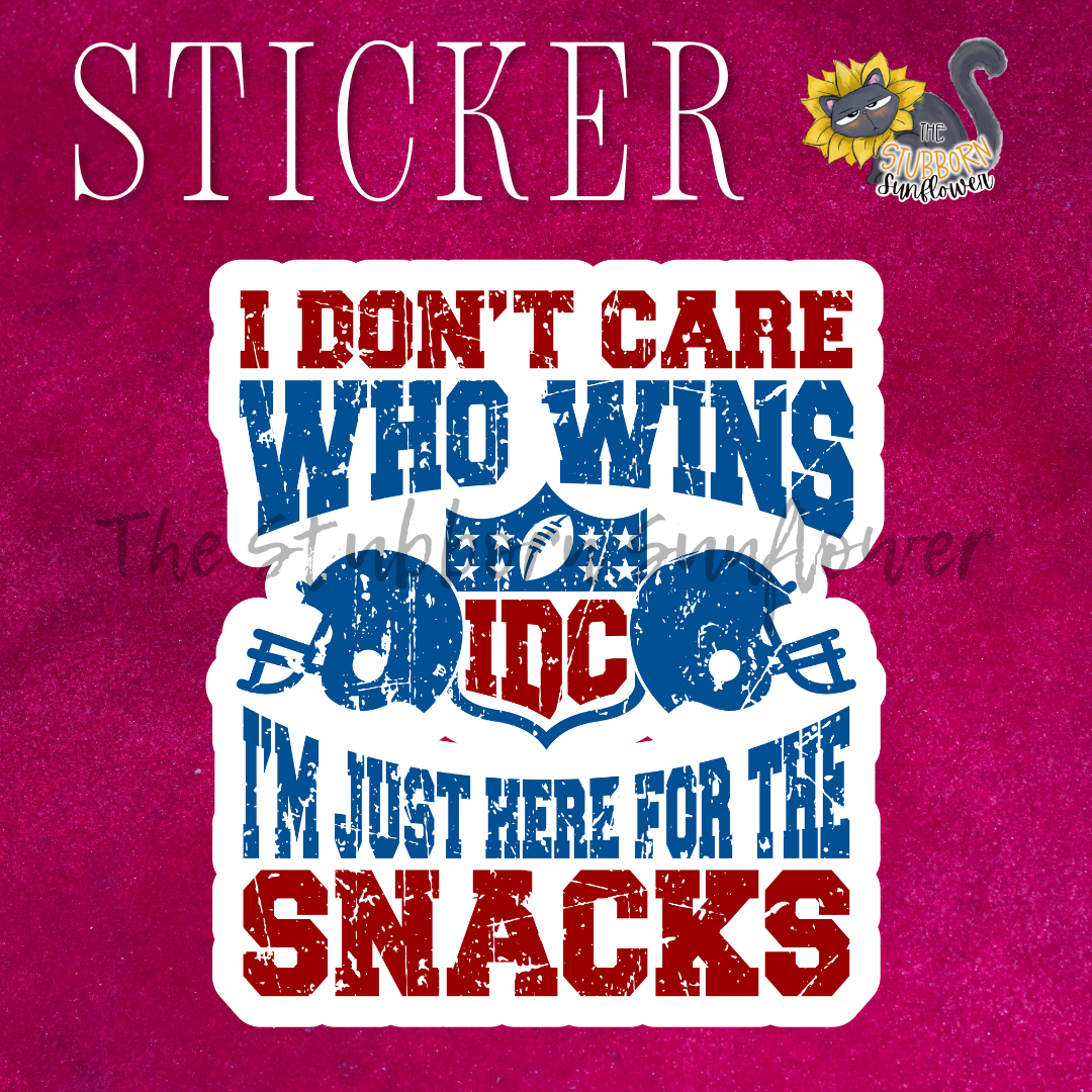 Be the life of the party with our "Just Here For The Snacks" sticker. Perfect for showing your lack of team loyalty (or lack of interest in the game altogether) at the Super Bowl. With this sticker, you can snack in peace and make a playful statement.