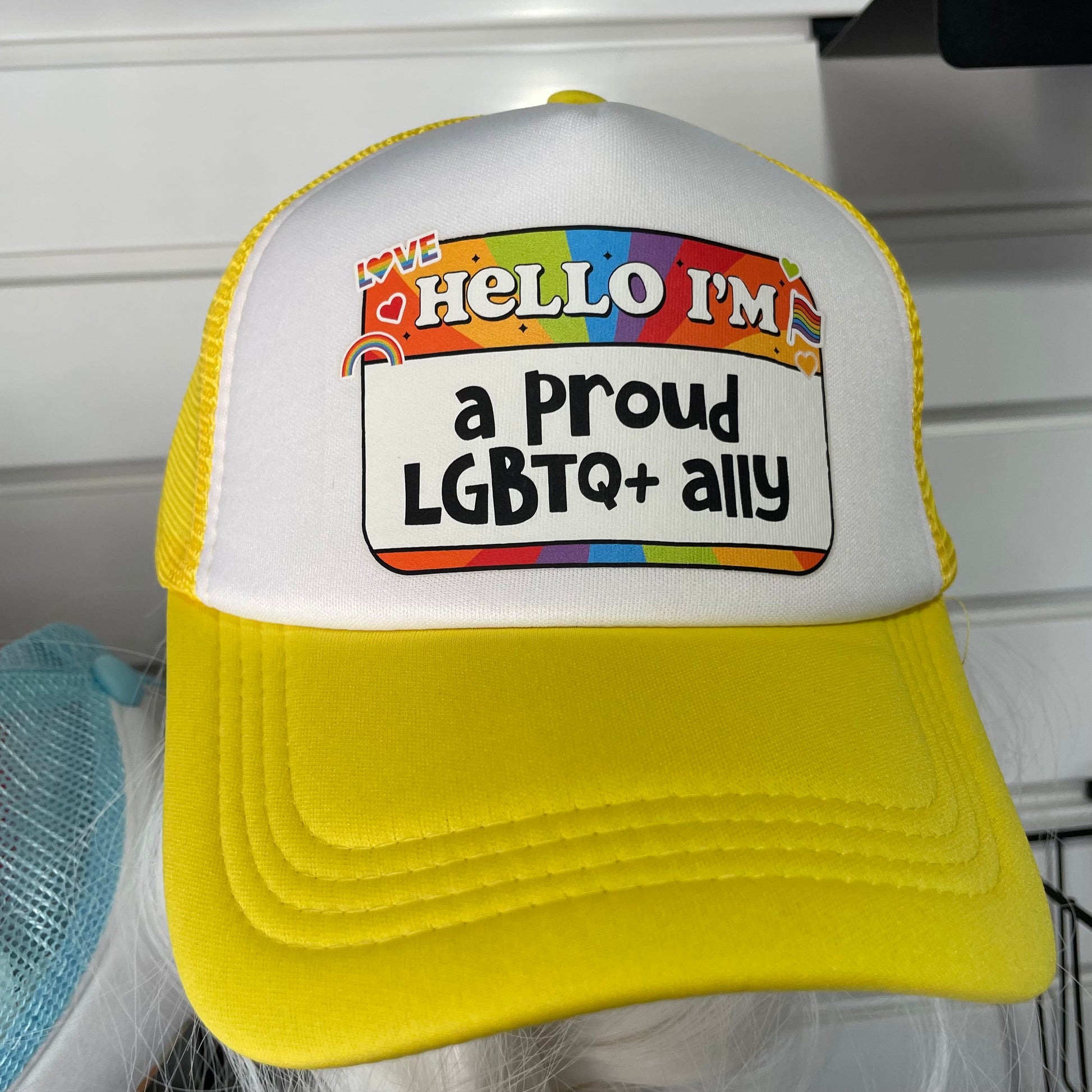 Be a proud ally with our LGBT Ally Trucker Hat! This bold hat features a mesh back and yellow brim for a fun and unique look. Stand out while supporting the community.