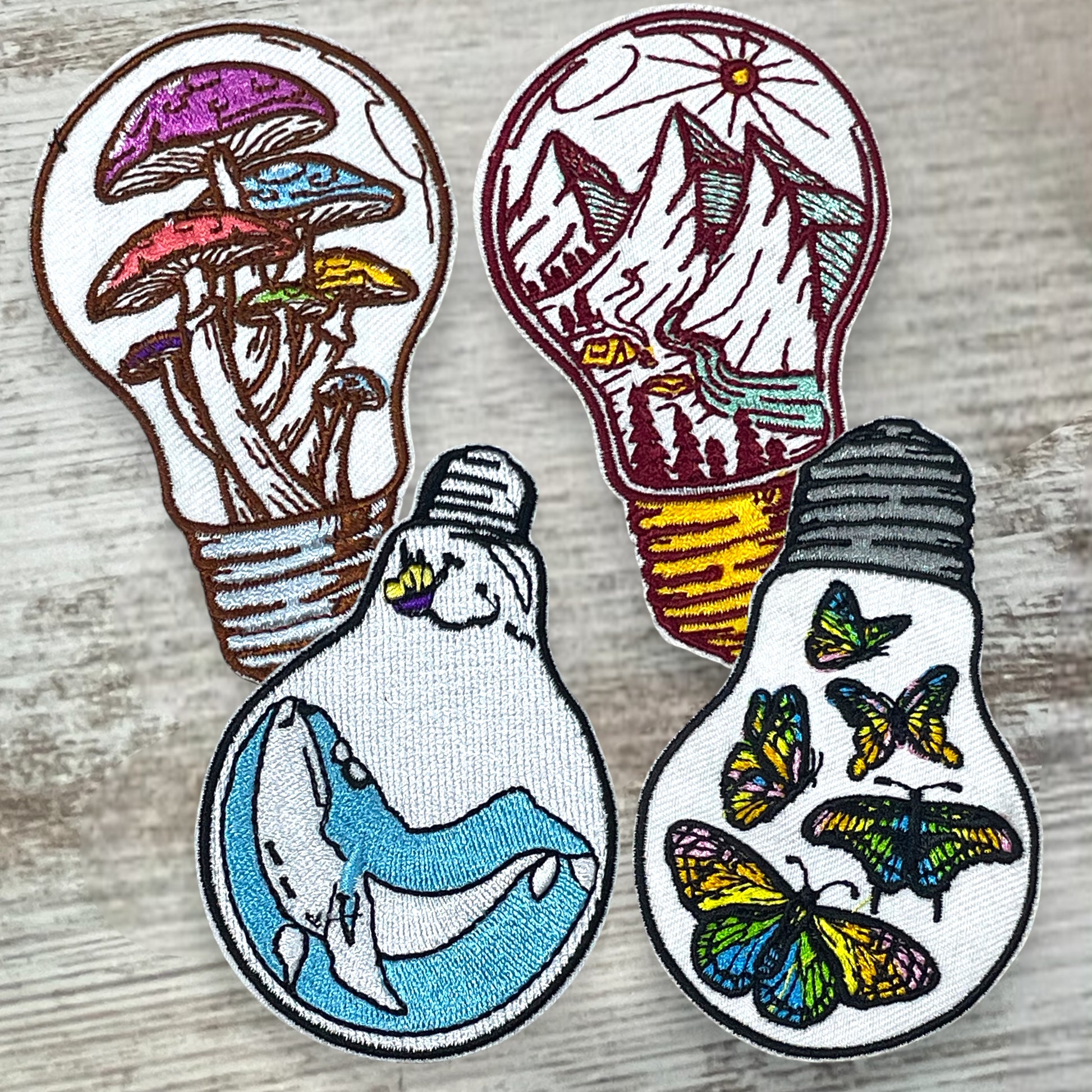 Brighten up your wardrobe with Lightbulb Patches! These iron on patches come in a variety of fun designs, adding a quirky touch to any outfit. No need to fuss with sewing, just iron on and go. (No more dull clothes!)