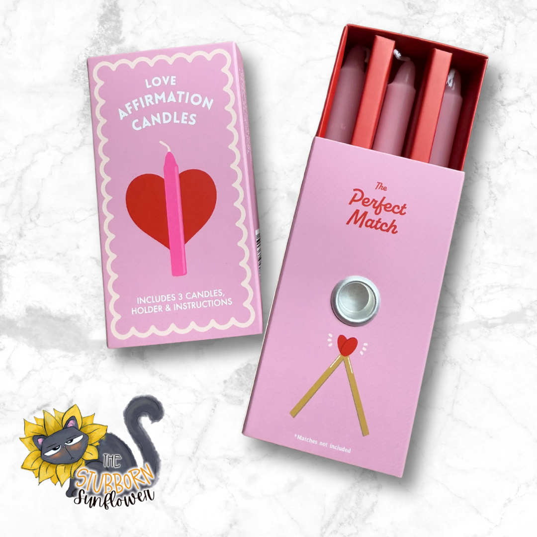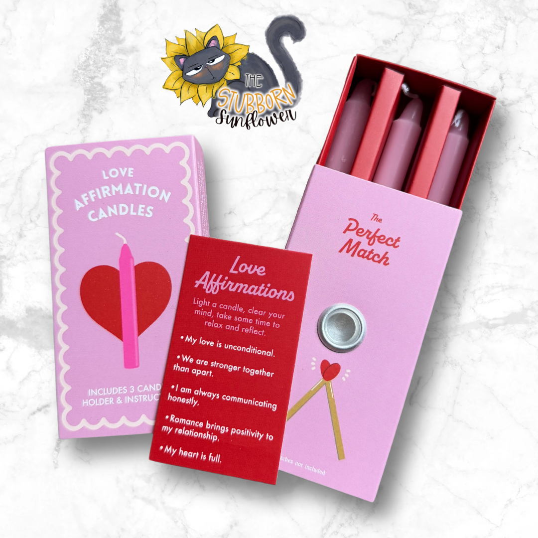 Spread love and light with our Love Affirmation Candles. This set includes 3 candles and directions for use, all enclosed in a unique box that also serves as a candle holder. Surround yourself with love and positive energy with every flicker of the flame.