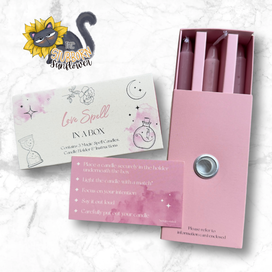 Channel your inner witch with this spellbinding Love Spell Box. Complete with everything you need - 3 candles and step-by-step instructions - this box is perfect for manifesting love in your life.