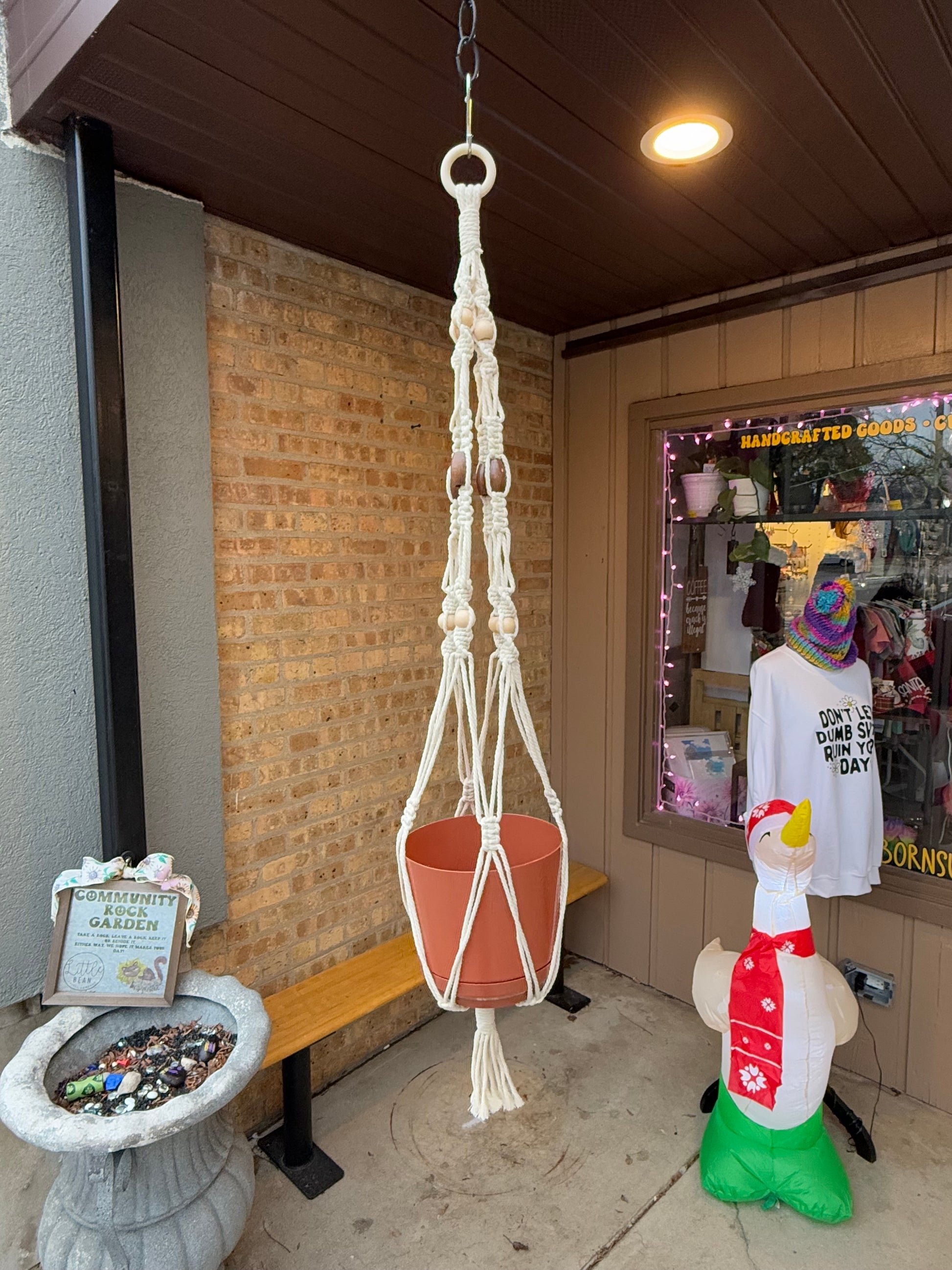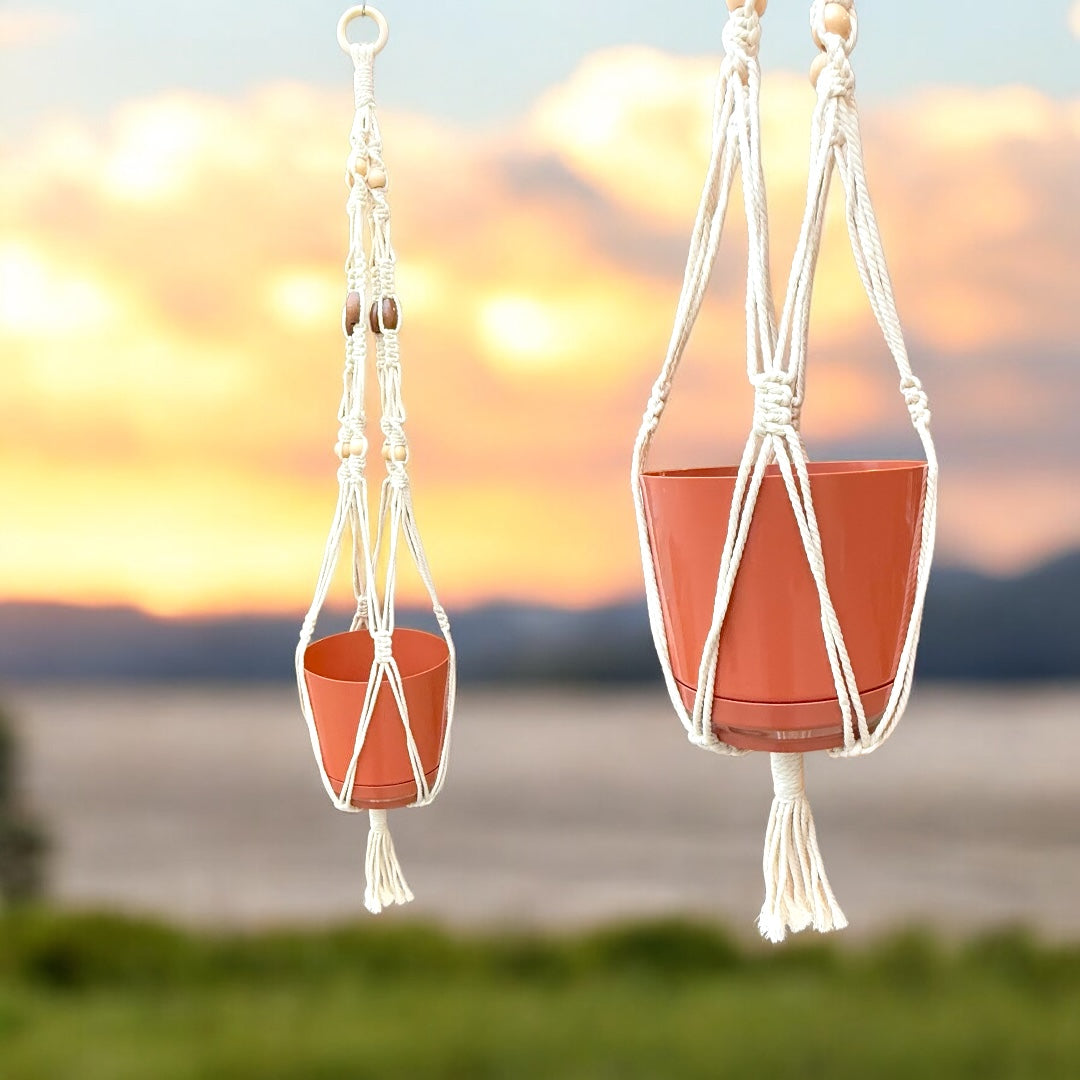 Spruce up your space with our locally handcrafted Macrame Plant Hanger. Featuring intricate macrame designs and natural wood beads, this hanger adds a touch of boho chic to any room. Plus, it comes with a planter included for easy plant placement. Get your green on!