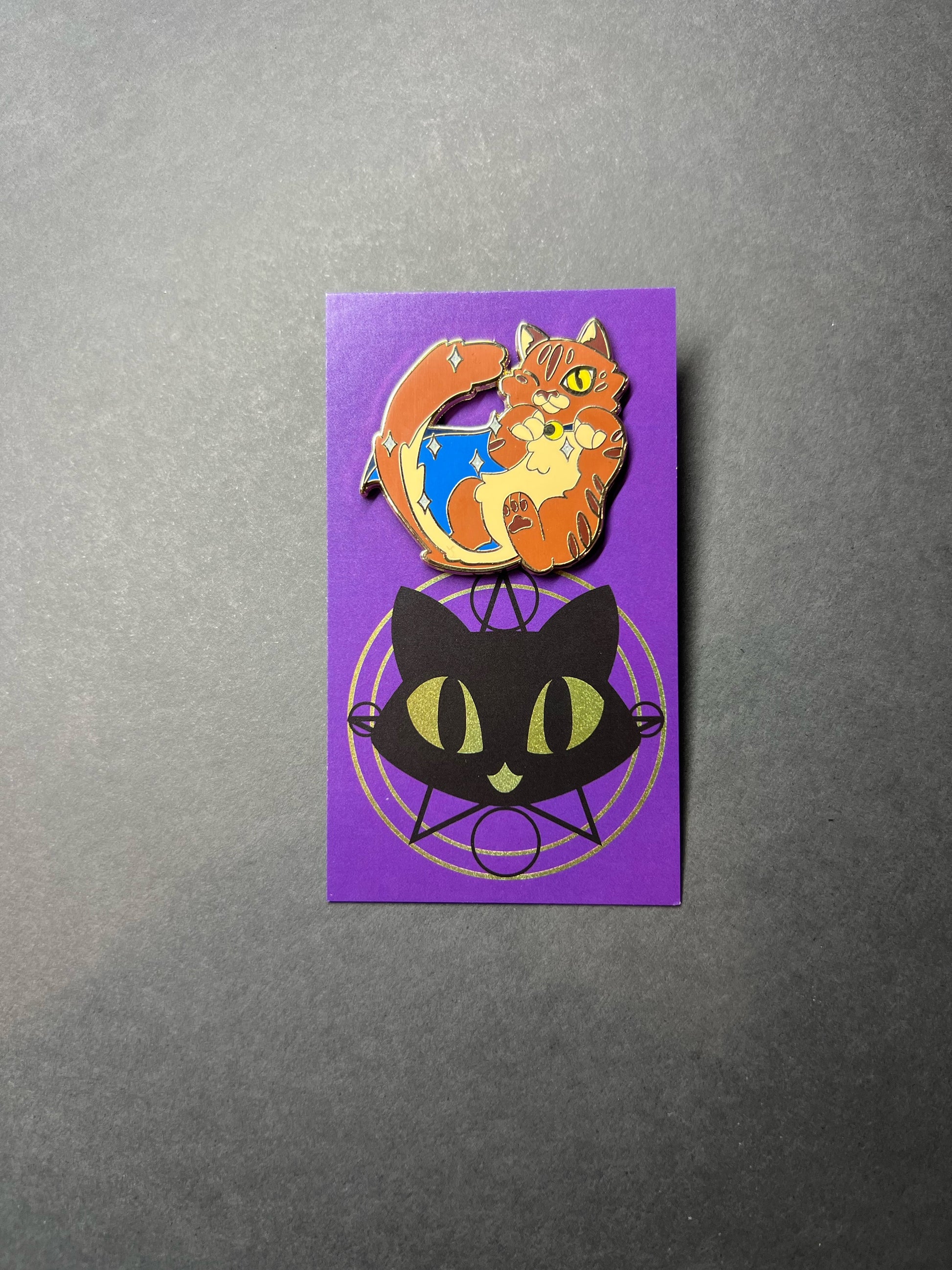Add a playful touch to your outfit with this Maine Coon enamel pin! Featuring a hand drawn image of a cute Maine coon, this pin is perfect for any cat lover. With vibrant colors, it's a must-have accessory for any pin collector.