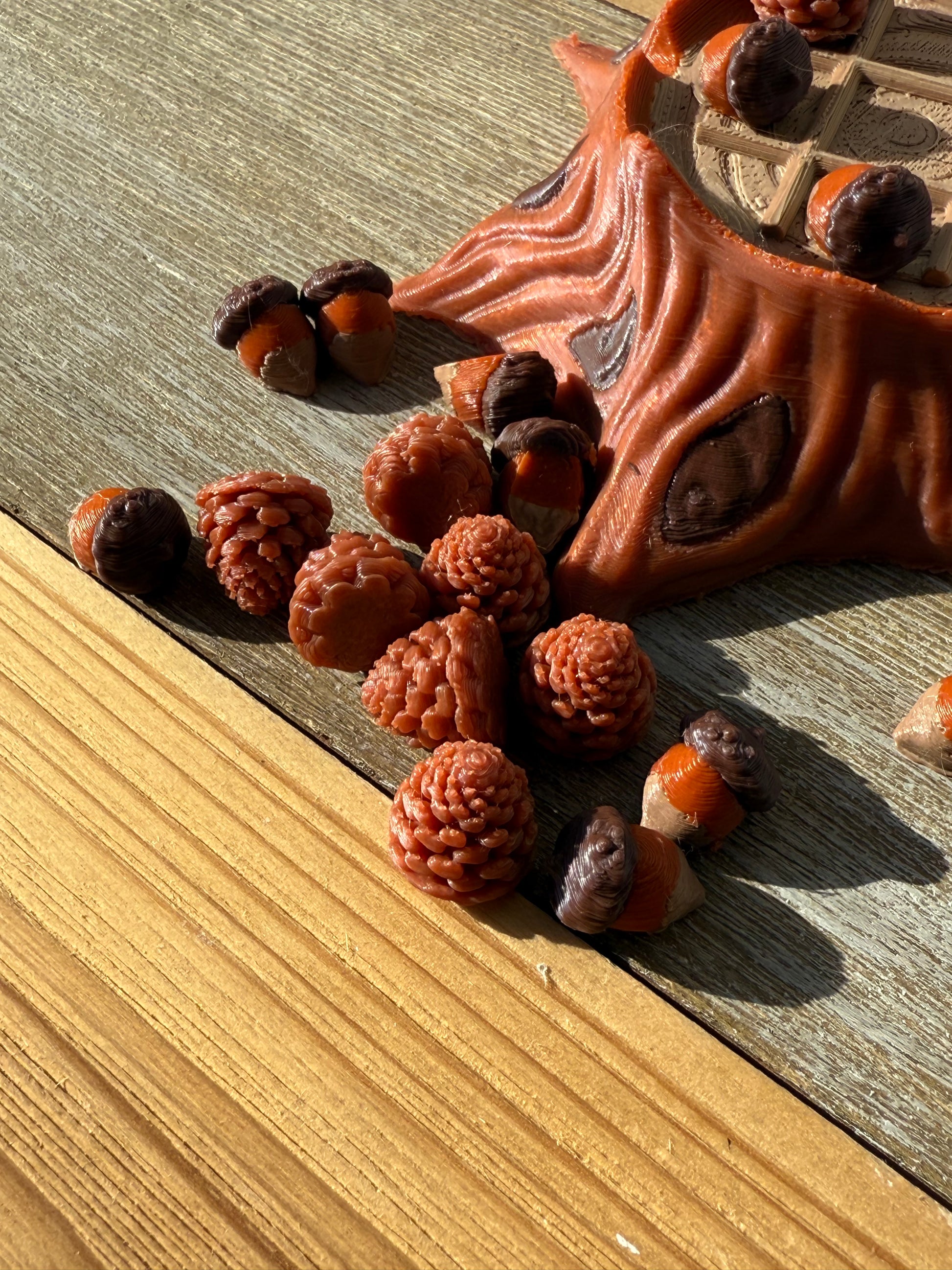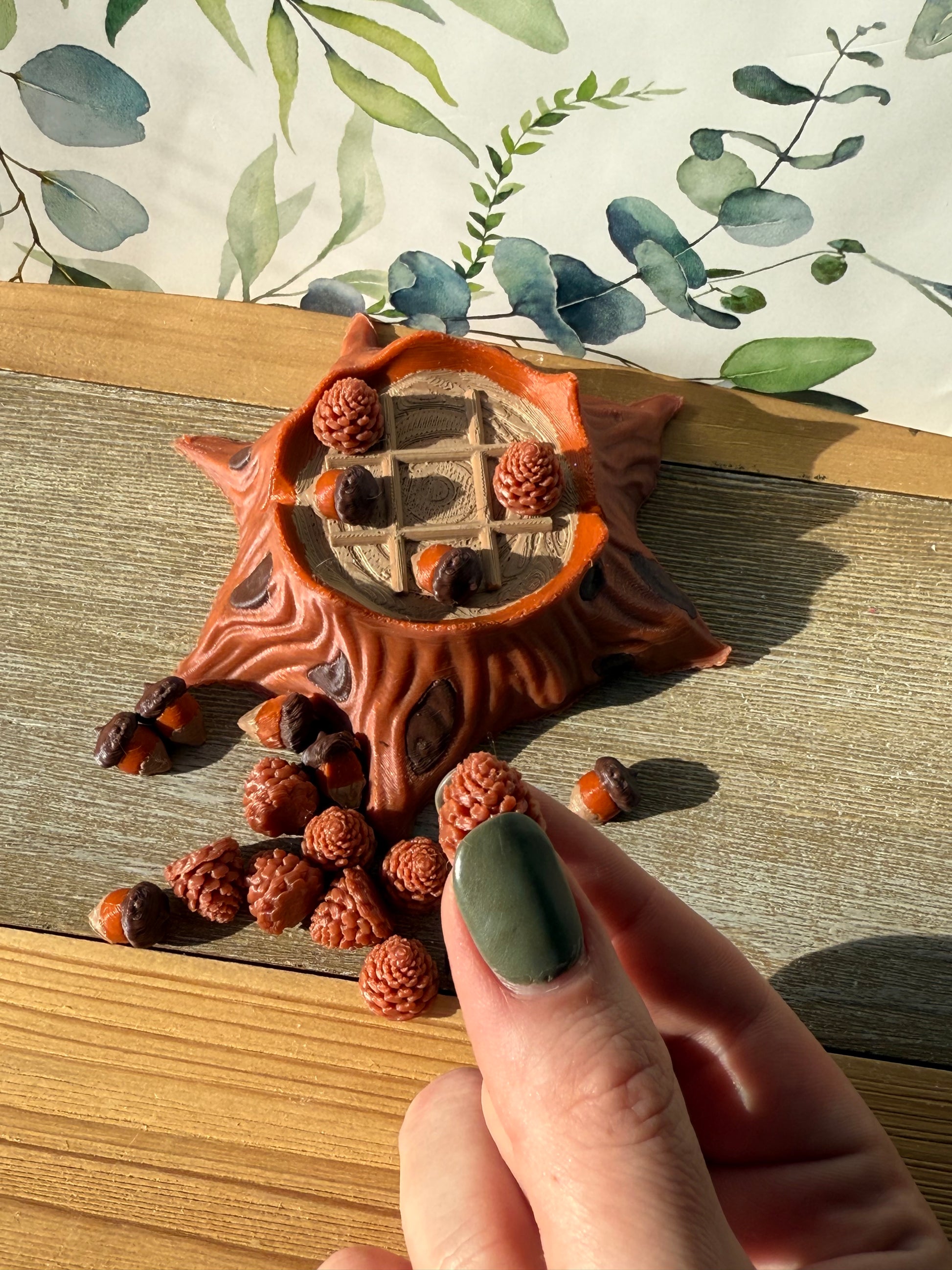 Embrace the woodland duel with squad acorn and squad pinecone in this one-of-a-kind 3D printed version of tic tac toe. Plan ahead and outwit your foe with a lighthearted and unconventional approach! Bid farewell to dull traditions and spice up your game night. These prints may not be flawless, but they're fully prepared for playtime.