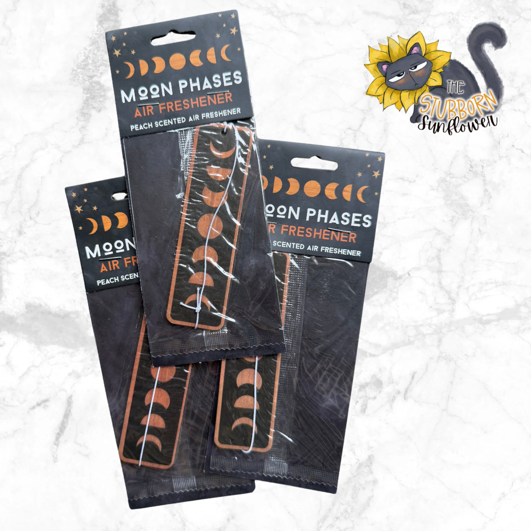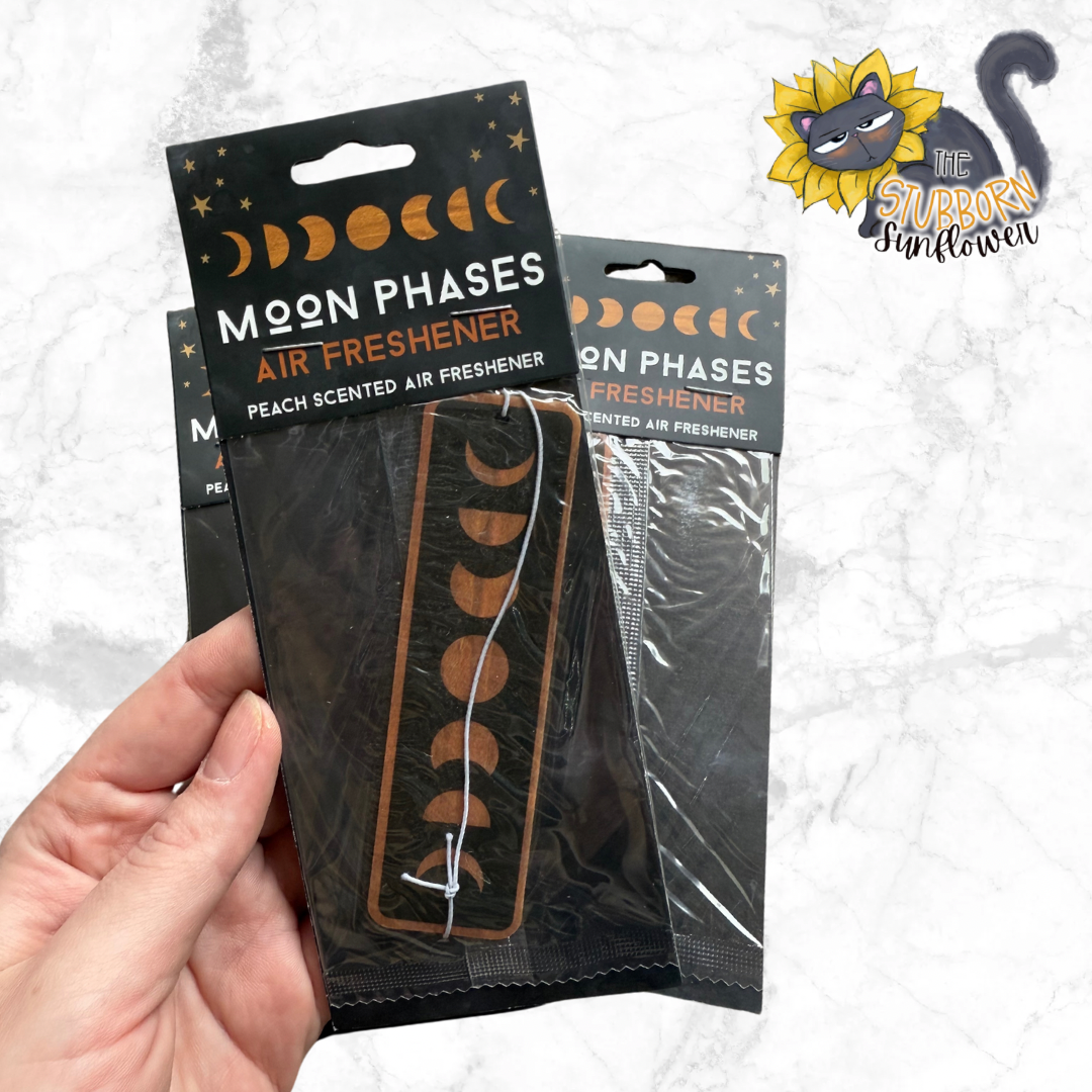 Freshen up your ride with a touch of whimsy with our Moon Phases Peach Scented Air Freshener! Enjoy the sweet scent of peaches while gazing at the changing phases of the moon. Perfect for adding a playful and quirky touch to your car.