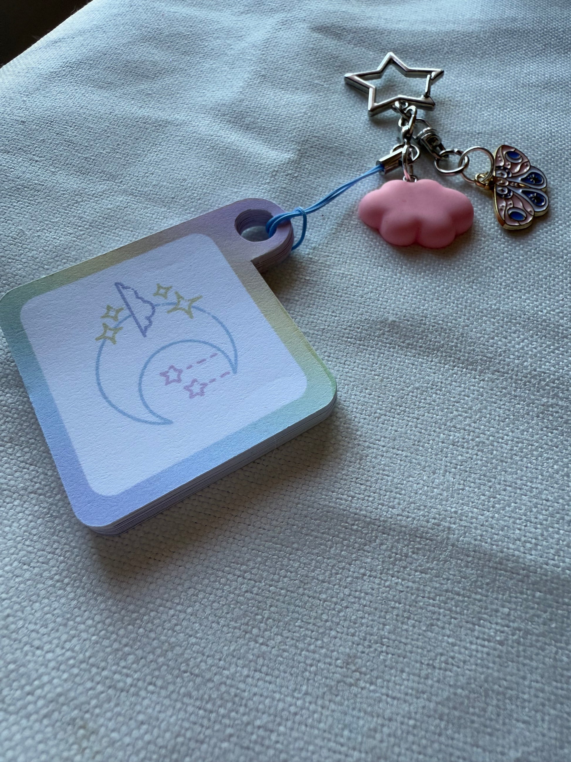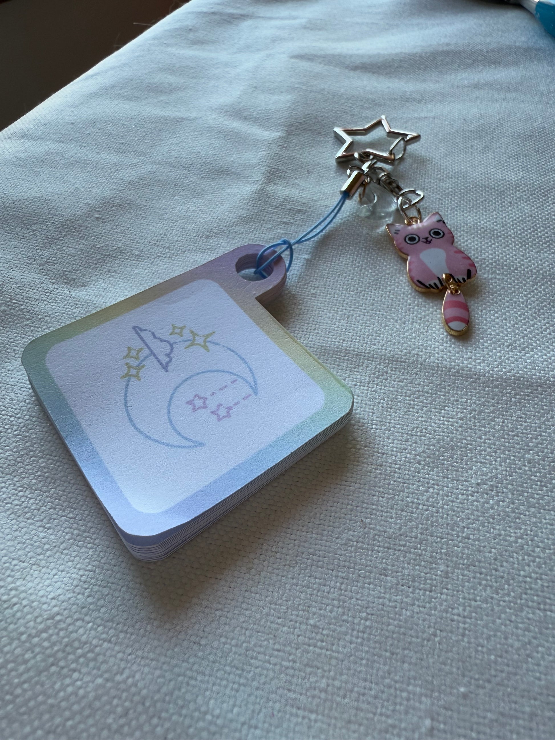 Keep your notes and keys close with our Whimsical Notepad Keychains, handcrafted by a talented local artist. Perfect for the playful and quirky individual who doesn't take themselves too seriously, these keychains add a fun touch to your everyday routine. Never lose your notes or keys again!