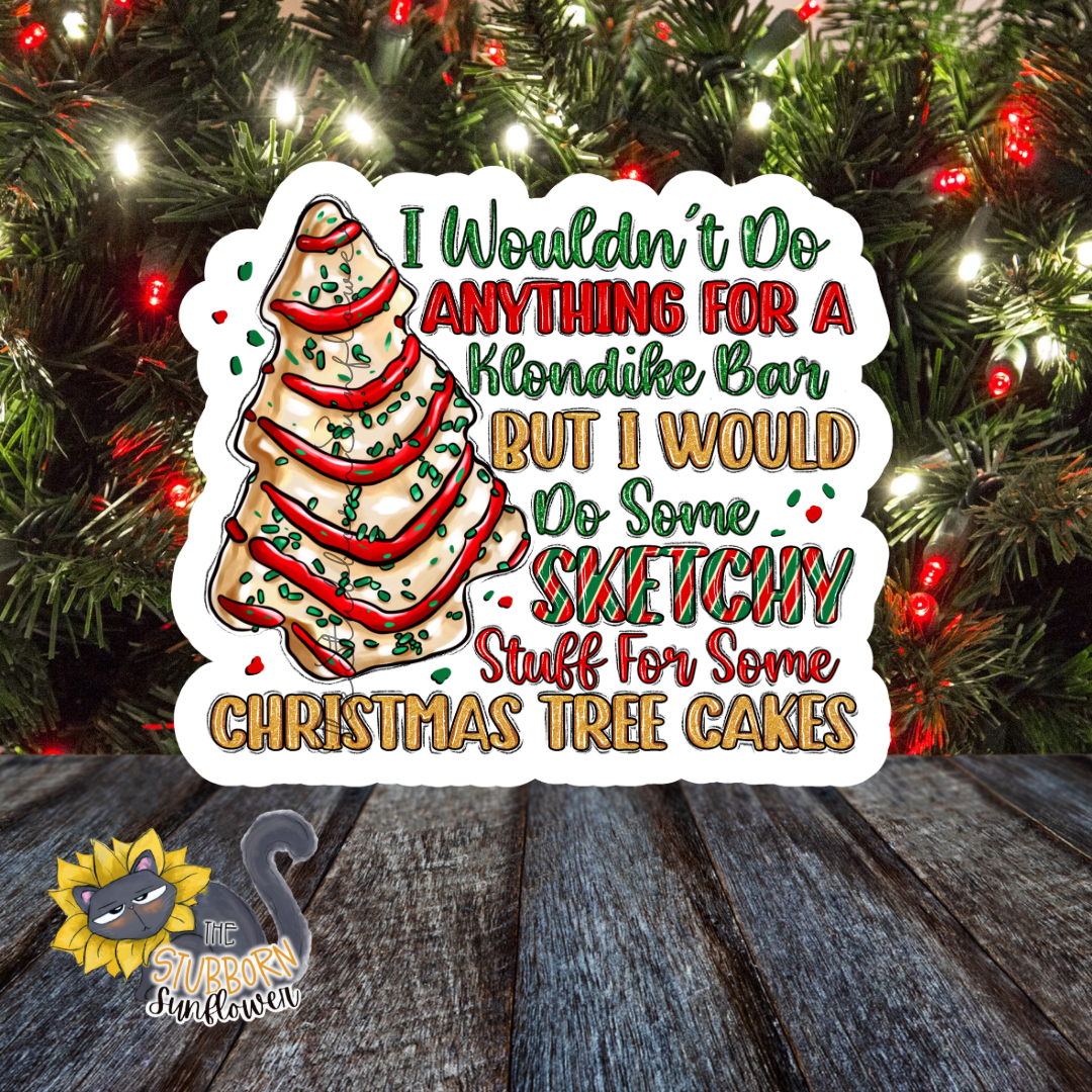 Take your holiday spirit to the next level with our Sketchy Stuff Christmas Tree Cake Sticker. Let your inner artist shine as you show off this quirky decal. A fun and playful addition to any laptop, water bottle, or notebook. (Christmas tree cake not included).