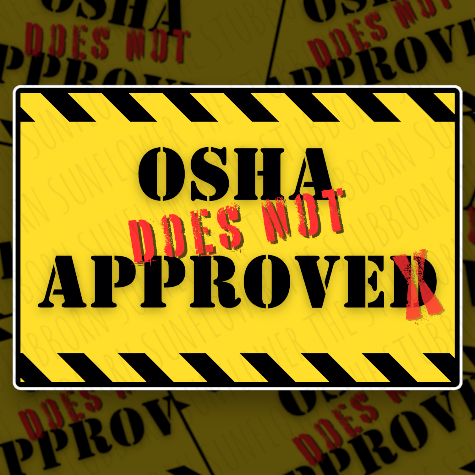 Let everyone know that OSHA is not in favor of your antics with this sticker! This blue collar humor will surely bring a smile and a chuckle to anyone passing by. Show that you don't take yourself too seriously and give your hard hat or locker the sass it deserves!
