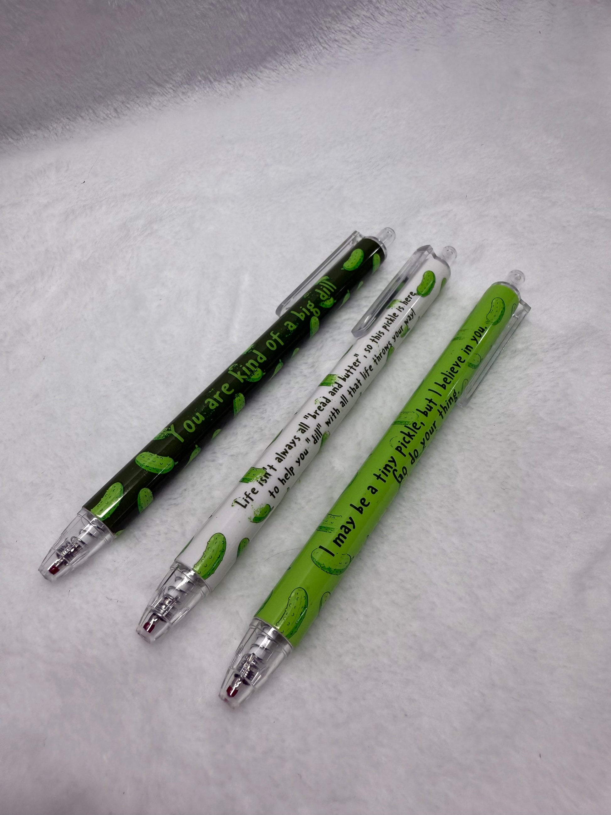 Get pickled with our hilarious Pickle Pens! These quirky writing tools are sure to add some fun to your day. Perfect for pickle lovers and those who don't take themselves too seriously. Don't just write, make a statement with our Pickle Pens!