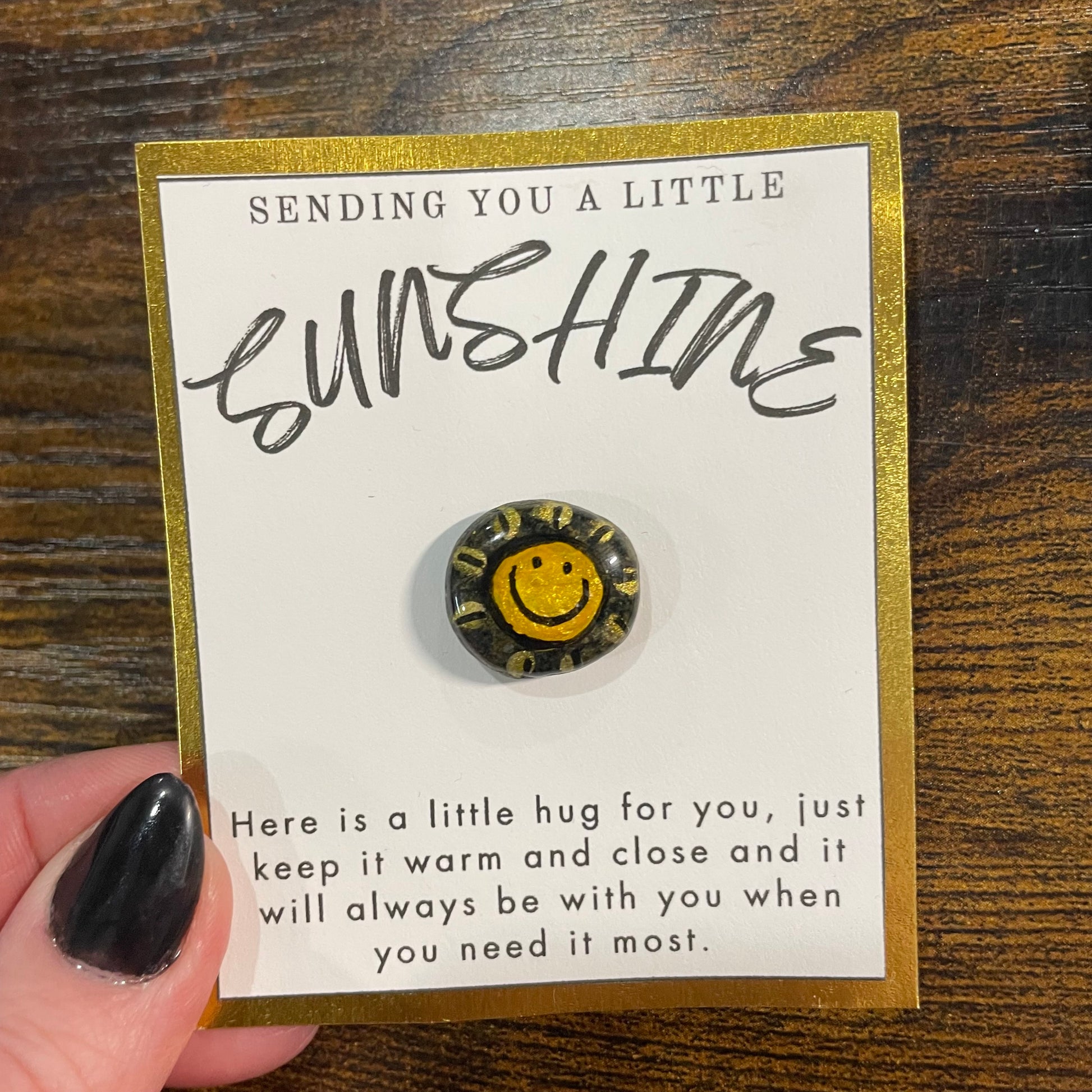 Rock your pocket with these playful Pocket Rocks - Star & Sunshine! Hand-crafted by Jhordin, they bring a bit of whimsy and joy to your day. Compact and portable, they make the perfect pick-me-up with a touch of silly. Carry them with you and spread a little sunshine wherever you go!h