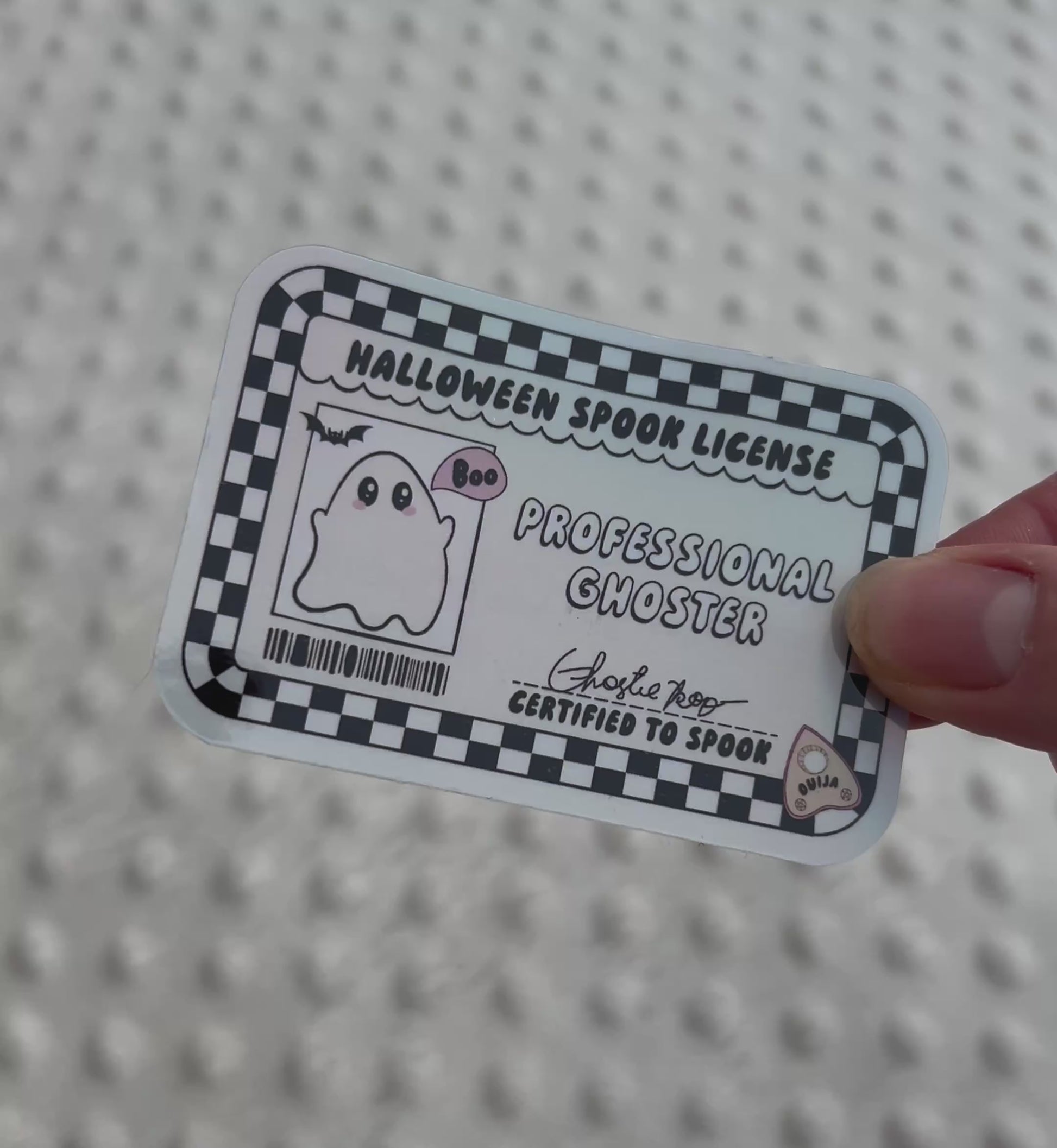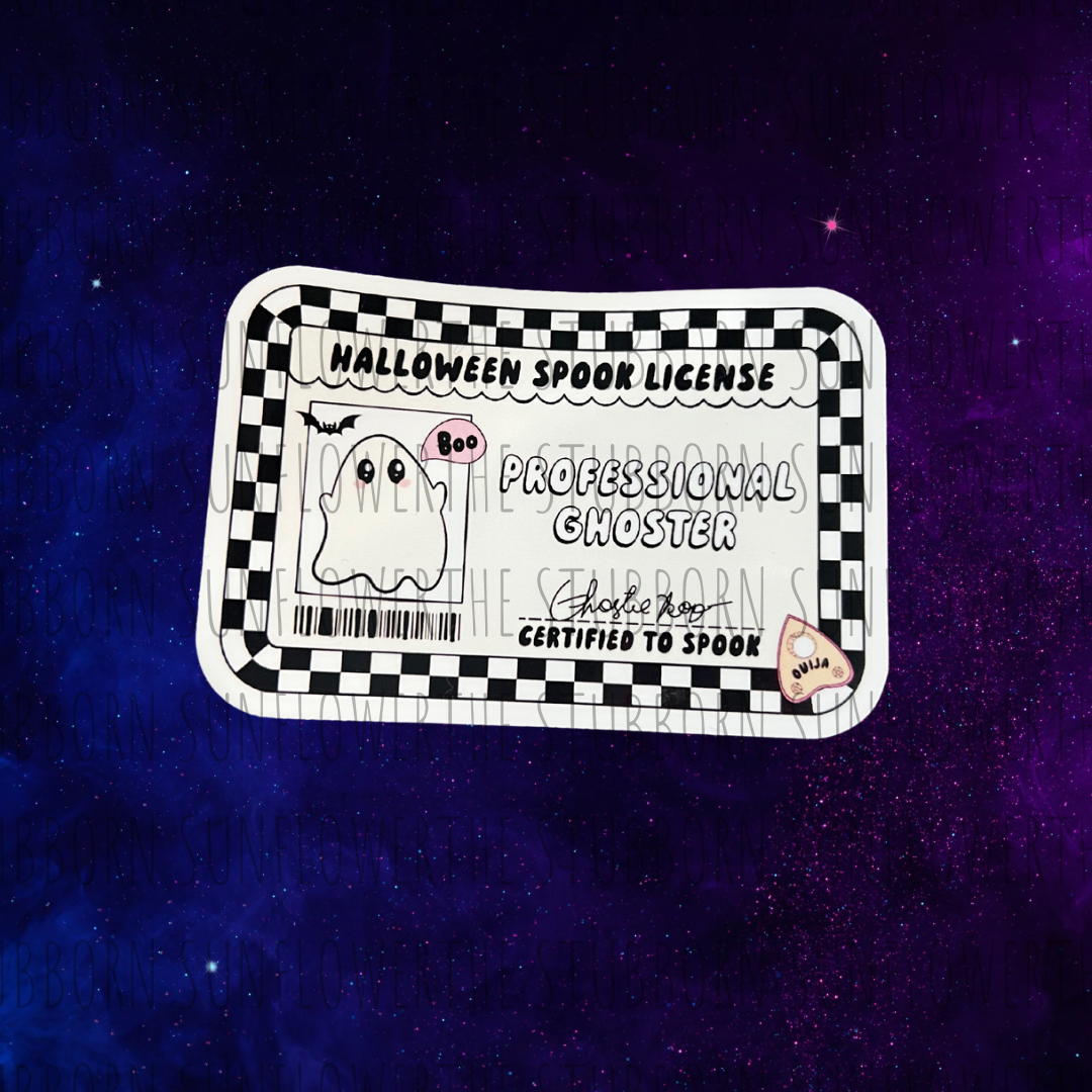Get into the Halloween spirit with our Professional Ghoster Sticker! Perfect for displaying your spooky credentials, this sticker boasts a professional ghoster Halloween spook license. Show off your ghosting skills with pride and spook all your friends!