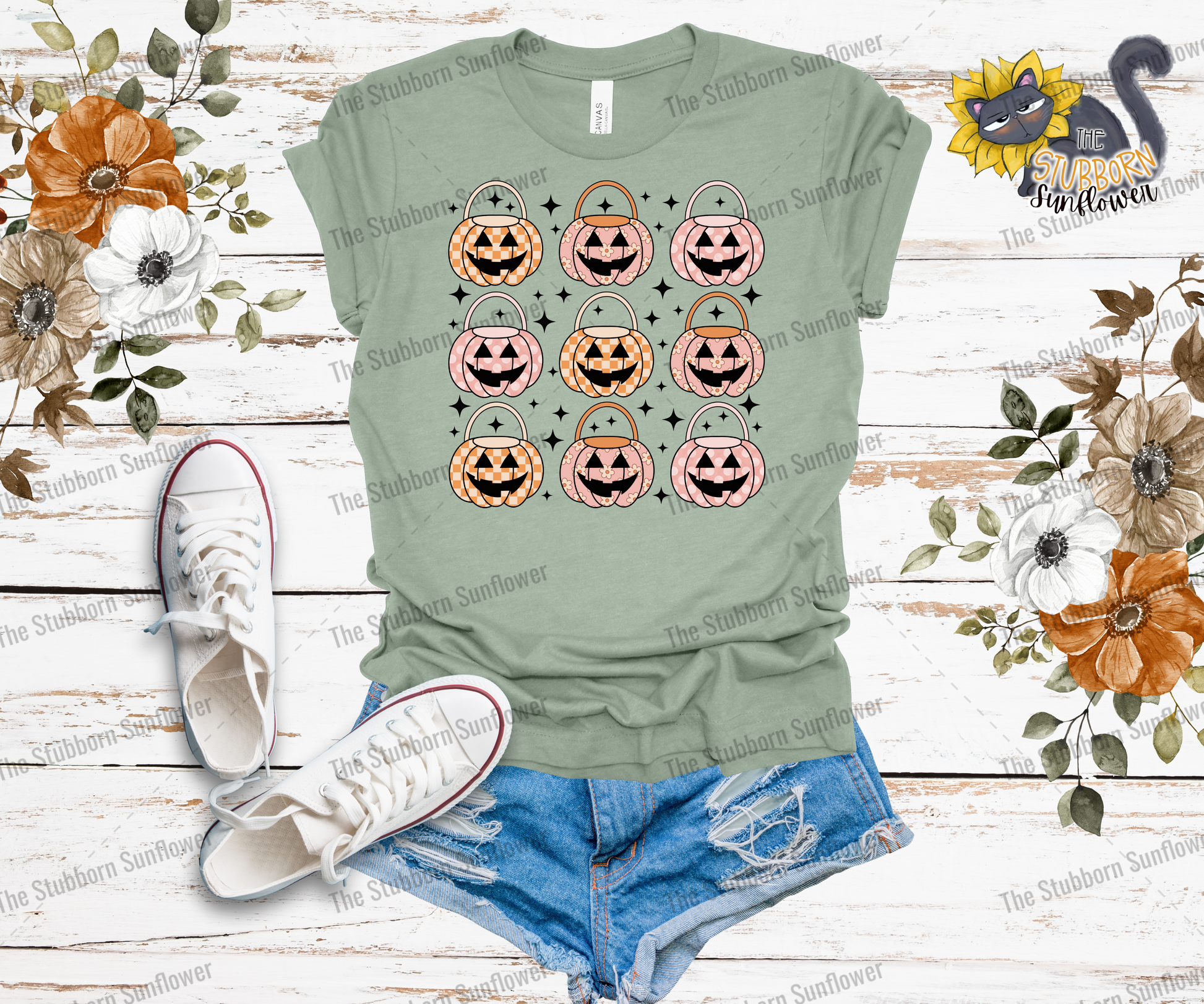 Celebrate Halloween in style with this Pumpkin Buckets T-Shirt! Featuring a super cute pastel pumpkin trick-or-treat bucket design, it’s perfect for adding a playful touch to your festive outfit. Soft and comfy, this shirt makes every Halloween moment even sweeter.