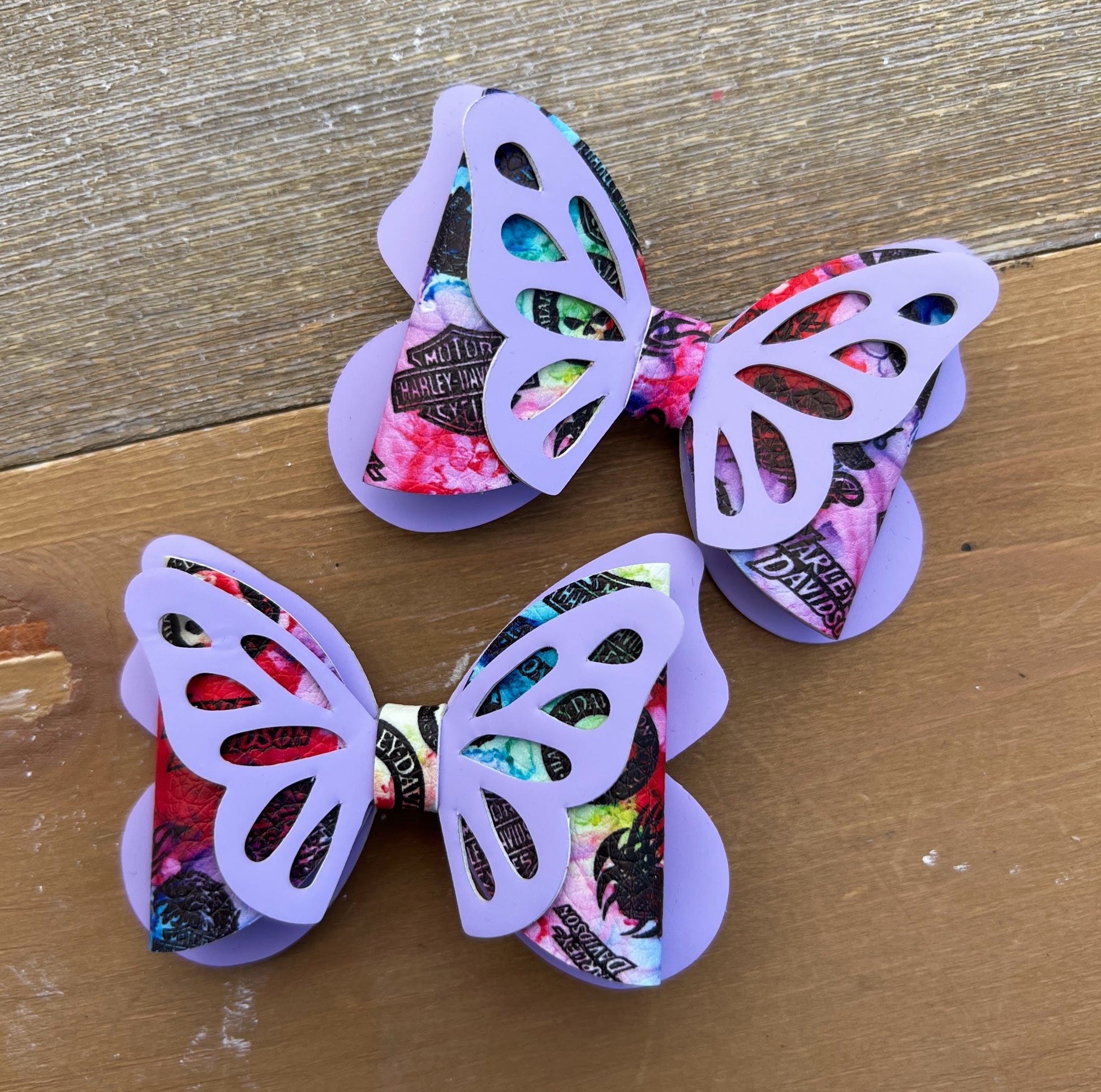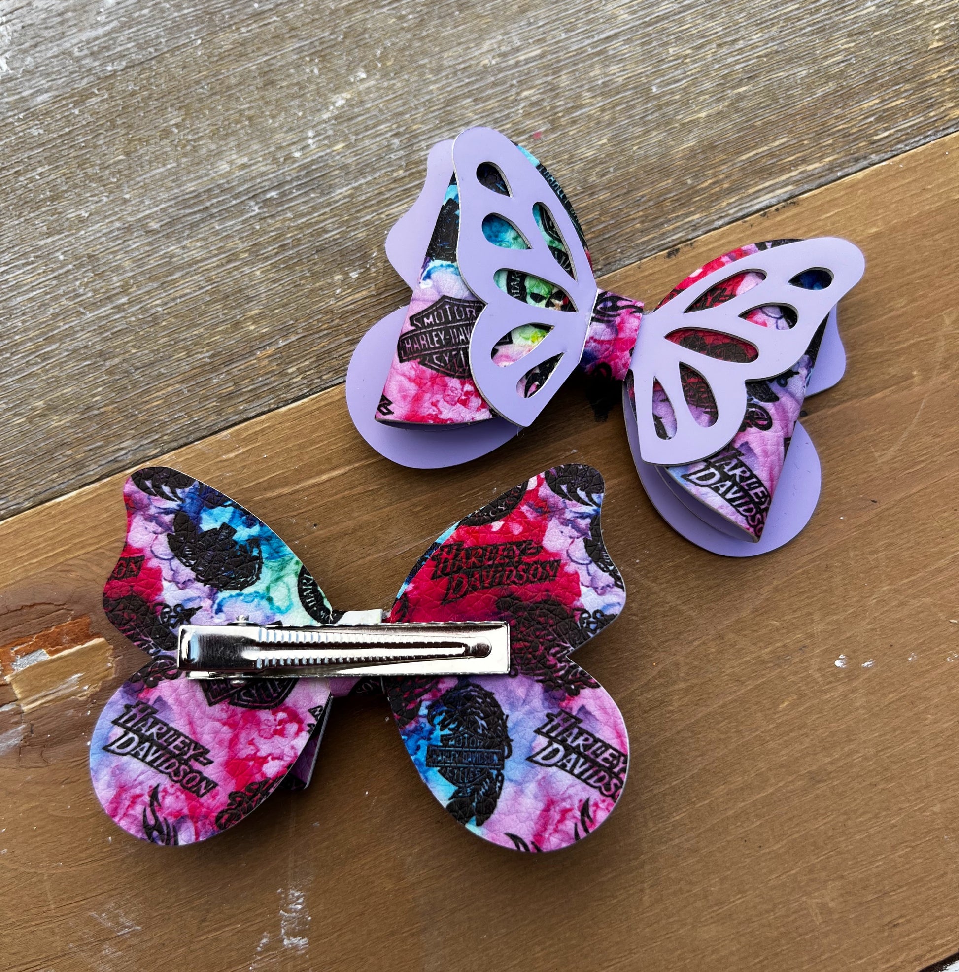 Add some biker flair to your hair with our handcrafted bows! Made with faux leather and featuring an iconic black and orange logo, these bows are perfect for fans of motorcycles and fashion!