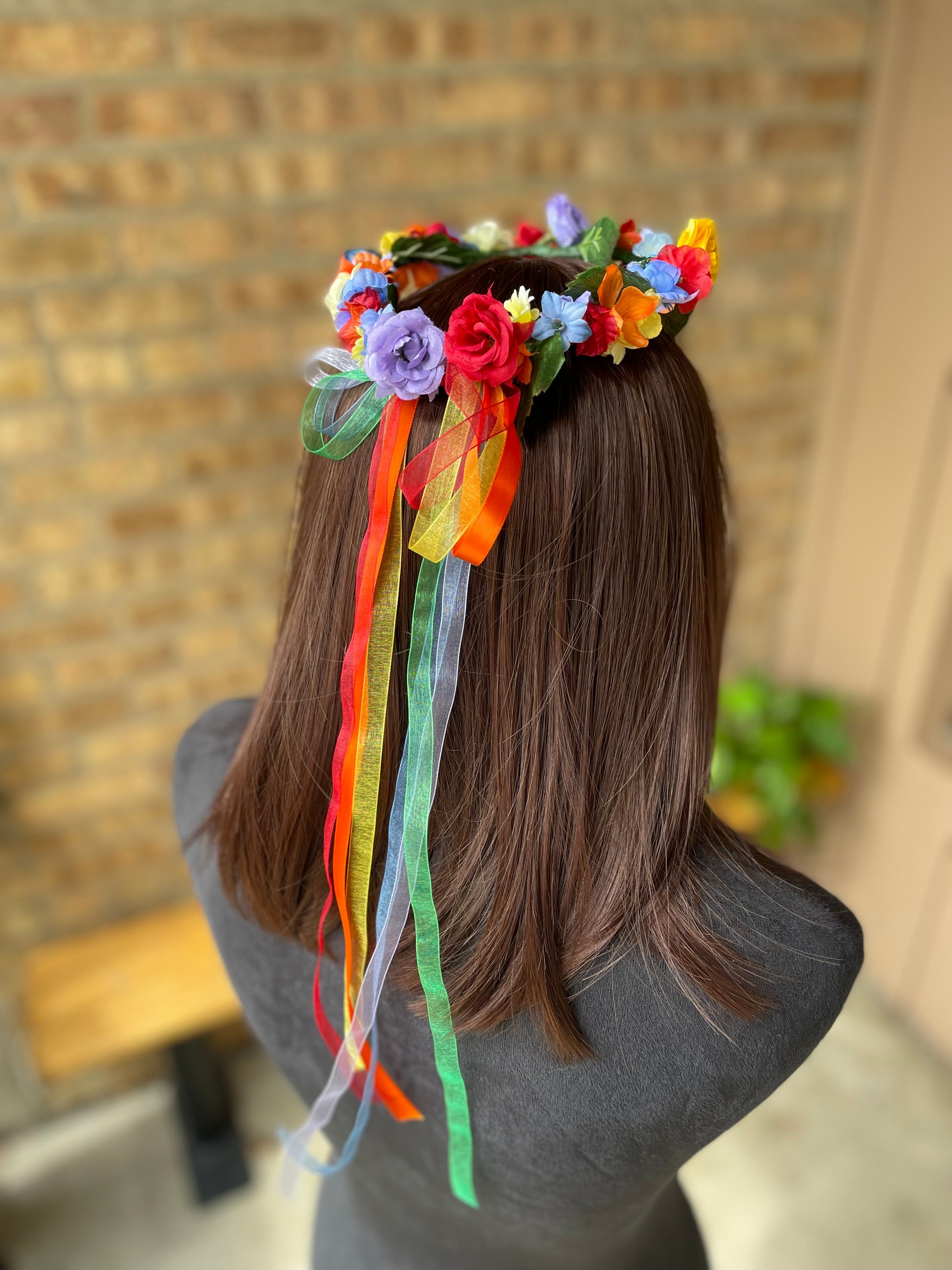Get the matching adult crown here : https://thestubbornsunflower.com/products/rainbow-flower-crown-adult-1
