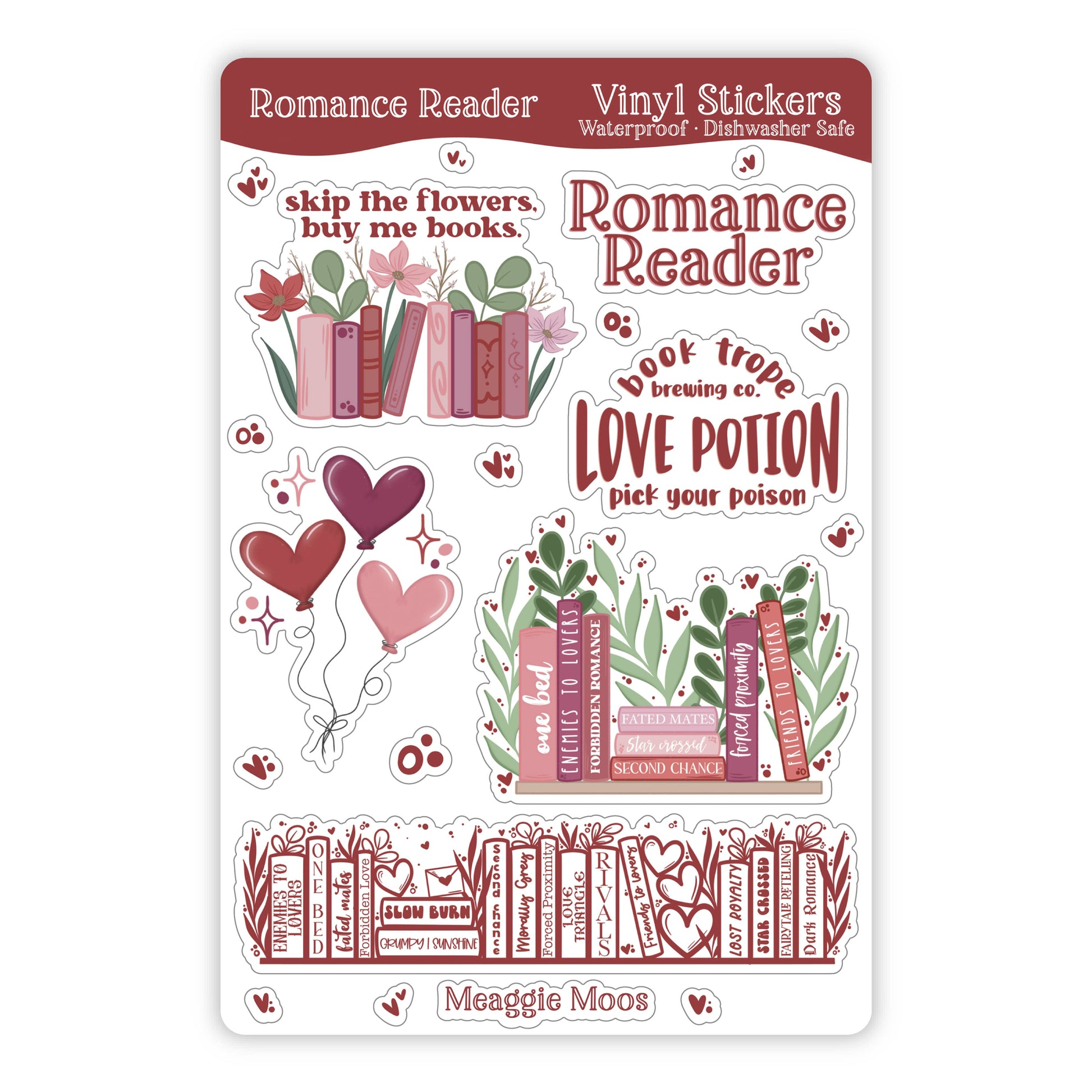 Romance Reader Waterproof Vinyl Sticker Sheet