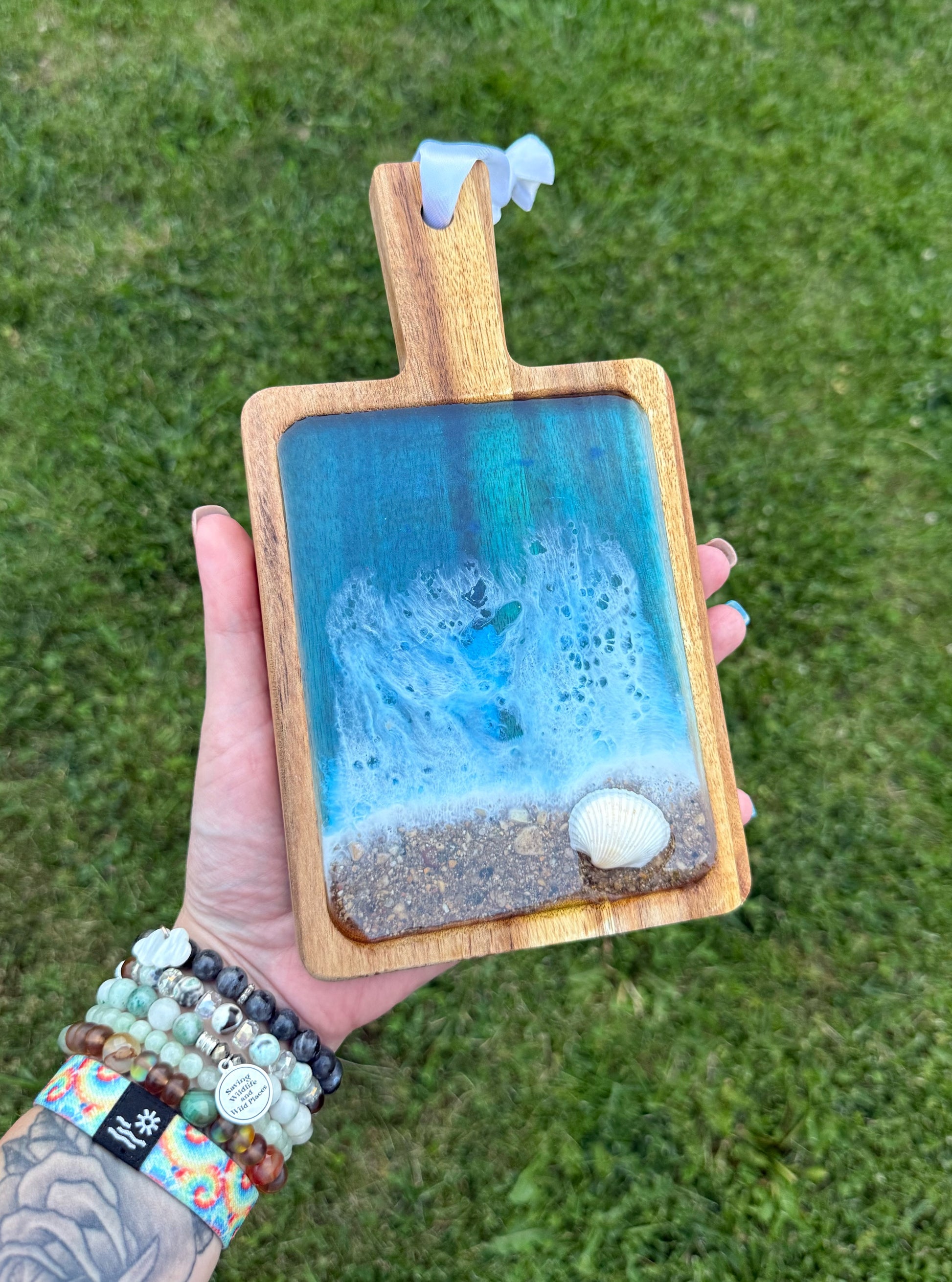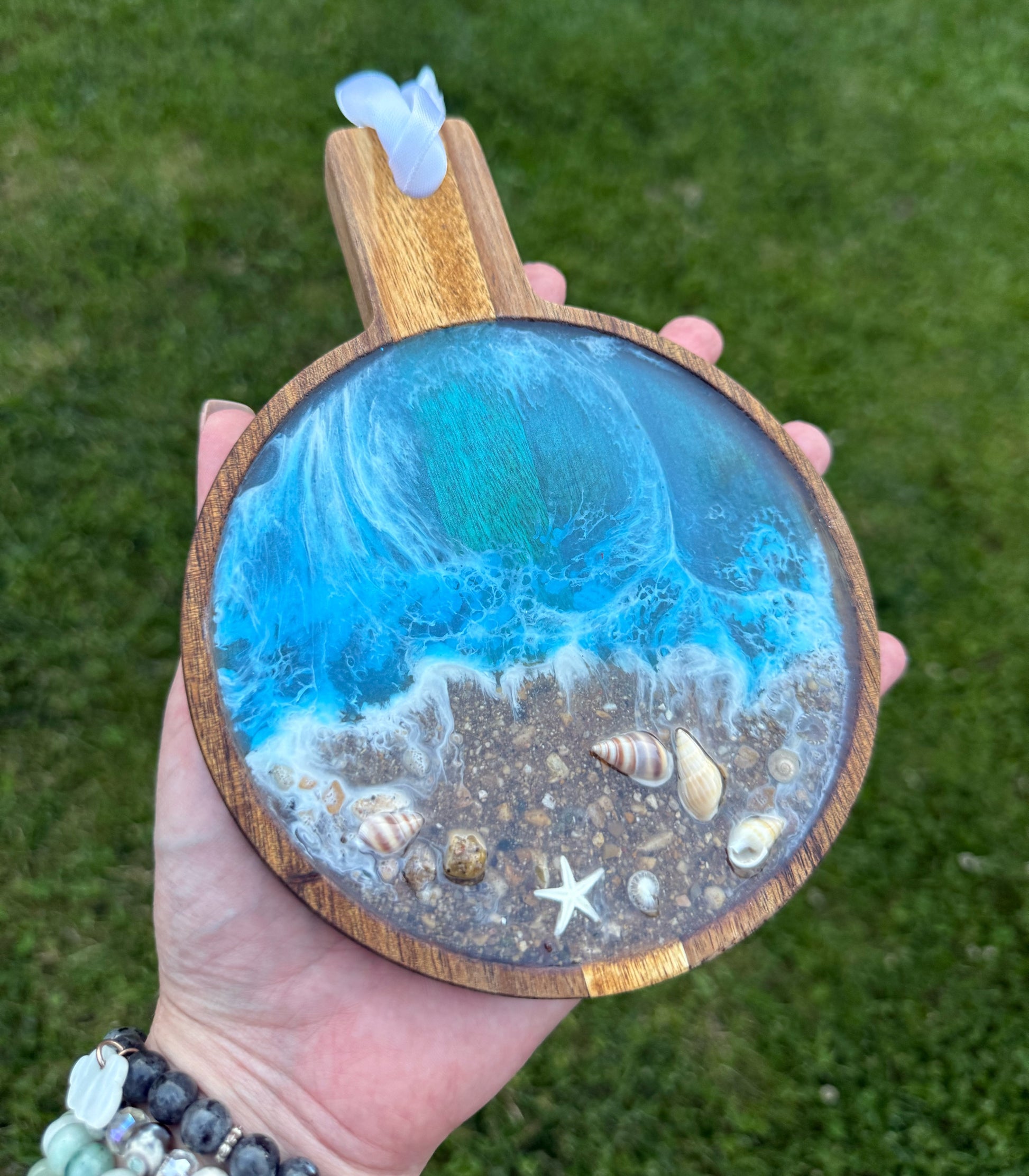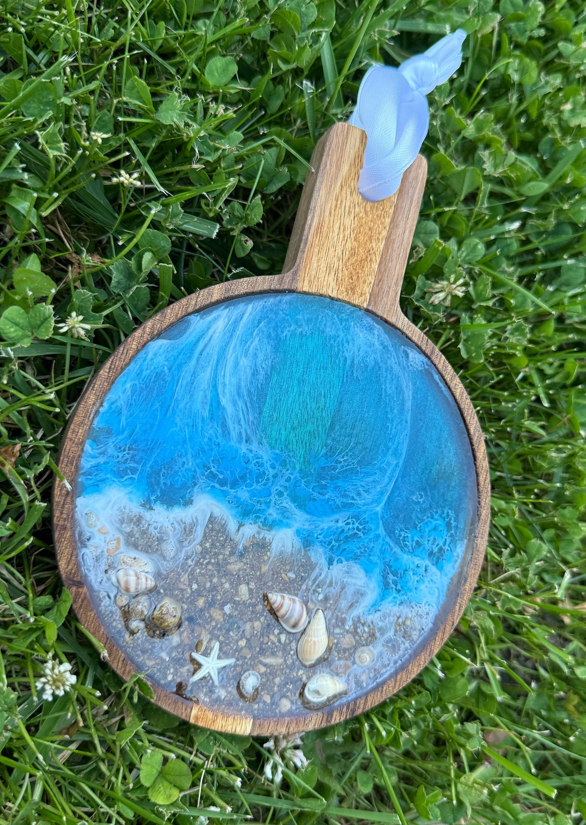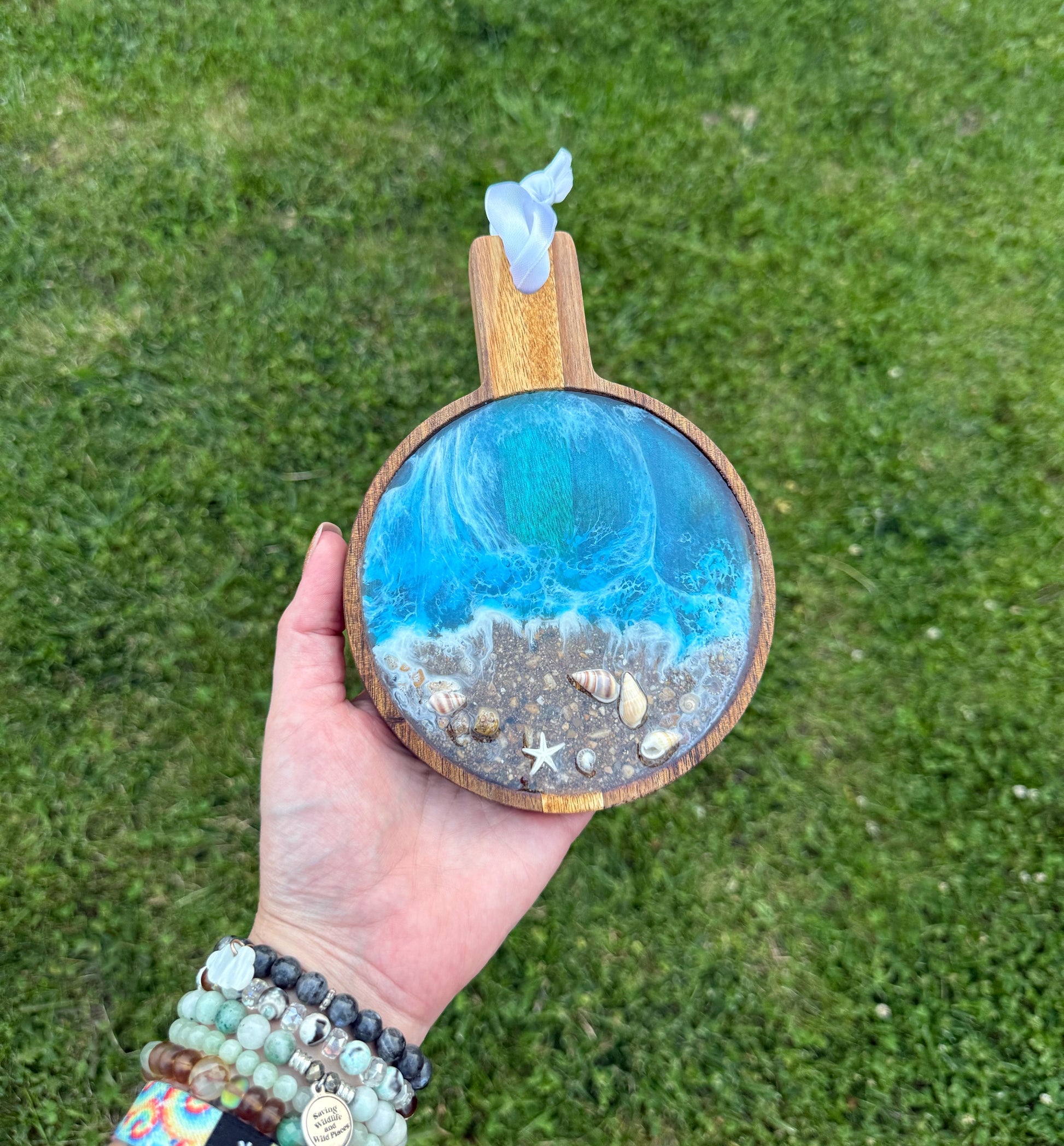 Add some beachy vibes to your home decor with our Round Lake Vibe Wall Decor! Each piece is hand poured with resin and includes real Lake Michigan sand and seashells for an authentic touch. Bring the lake to your walls (without the wet mess)!