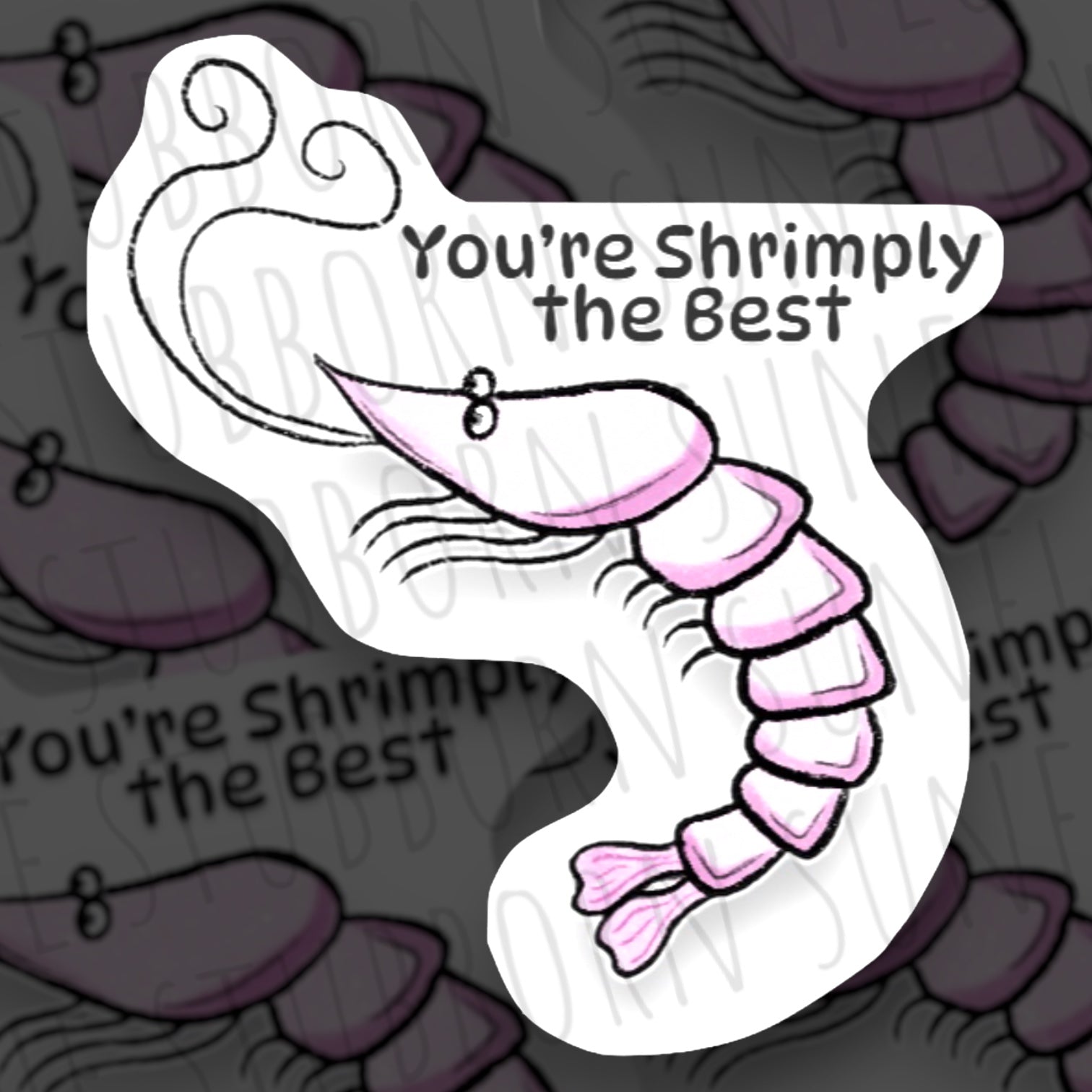 This sticker declares you’re shrimply the best! Put it on your laptop, water bottle, or anywhere you want to show some shrimp-lovin’ pride! A fun way to get your message across and make everyone smile! Perfect for any seafood lover! Shrimply amazing!